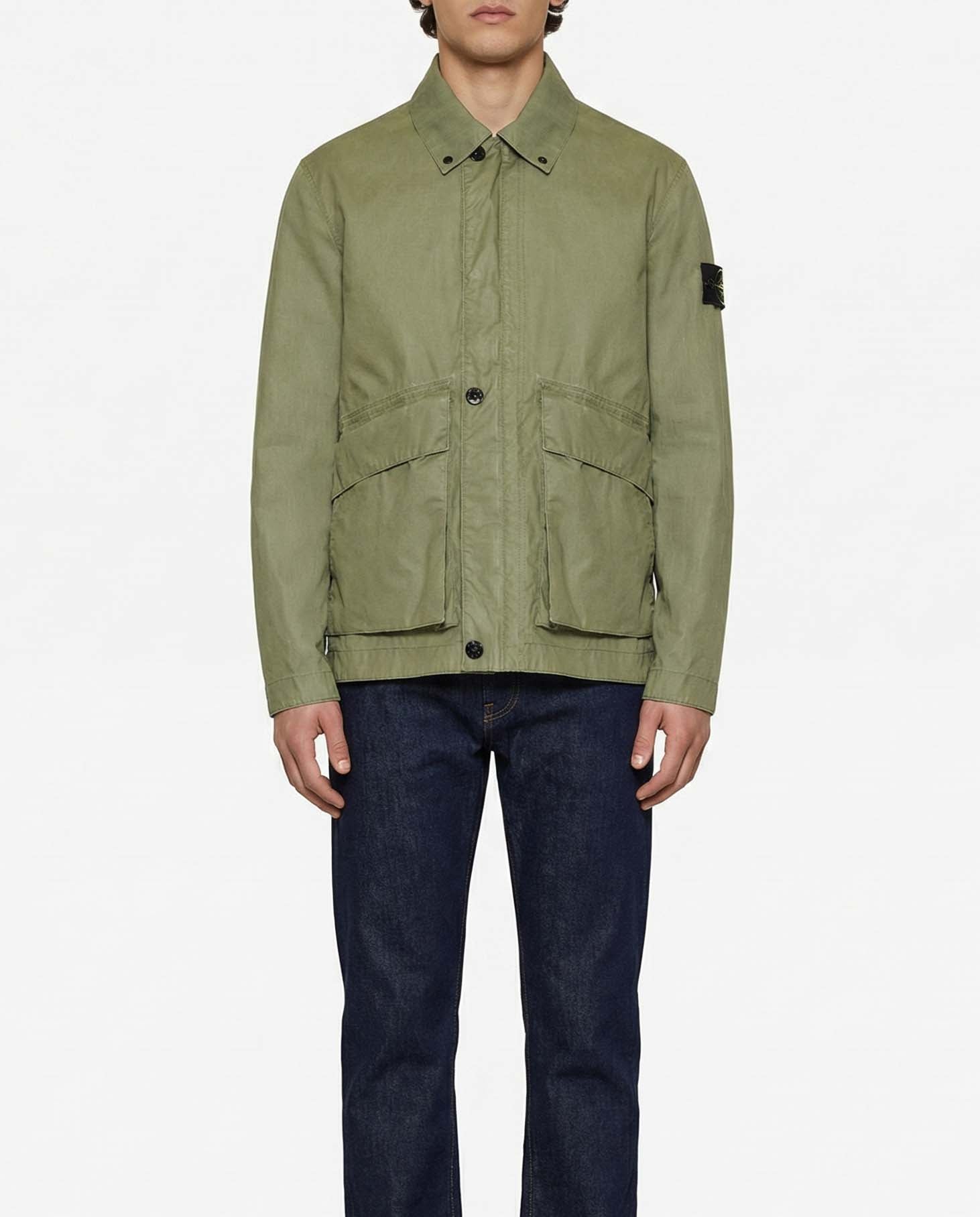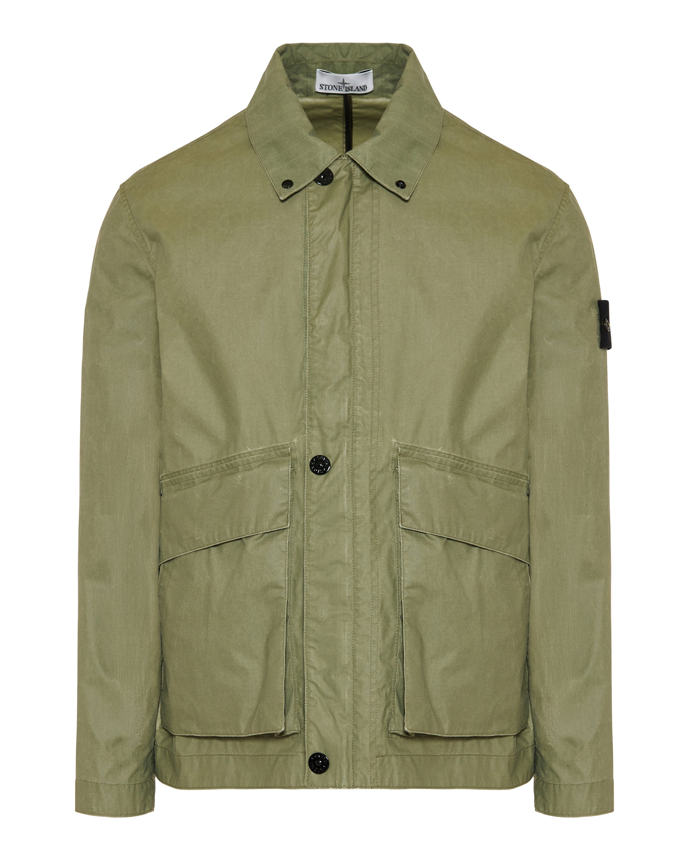 A lightweight jacket in waxed cotton, defined by a structured silhouette and protective pigmented finish.