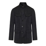 Elevate transitional wardrobes with the Tom Ford nylon military jacket, blending functional design and refined luxury. Tailored in a cotton-polyester blend shell with half-lined interior, it features a classic military-inspired silhouette, front flap pockets, adjustable cuffs, and a concealed zip-and-button closure. Its 76cm mid-length cut offers versatile sophistication for upscale casual and urban explorations.