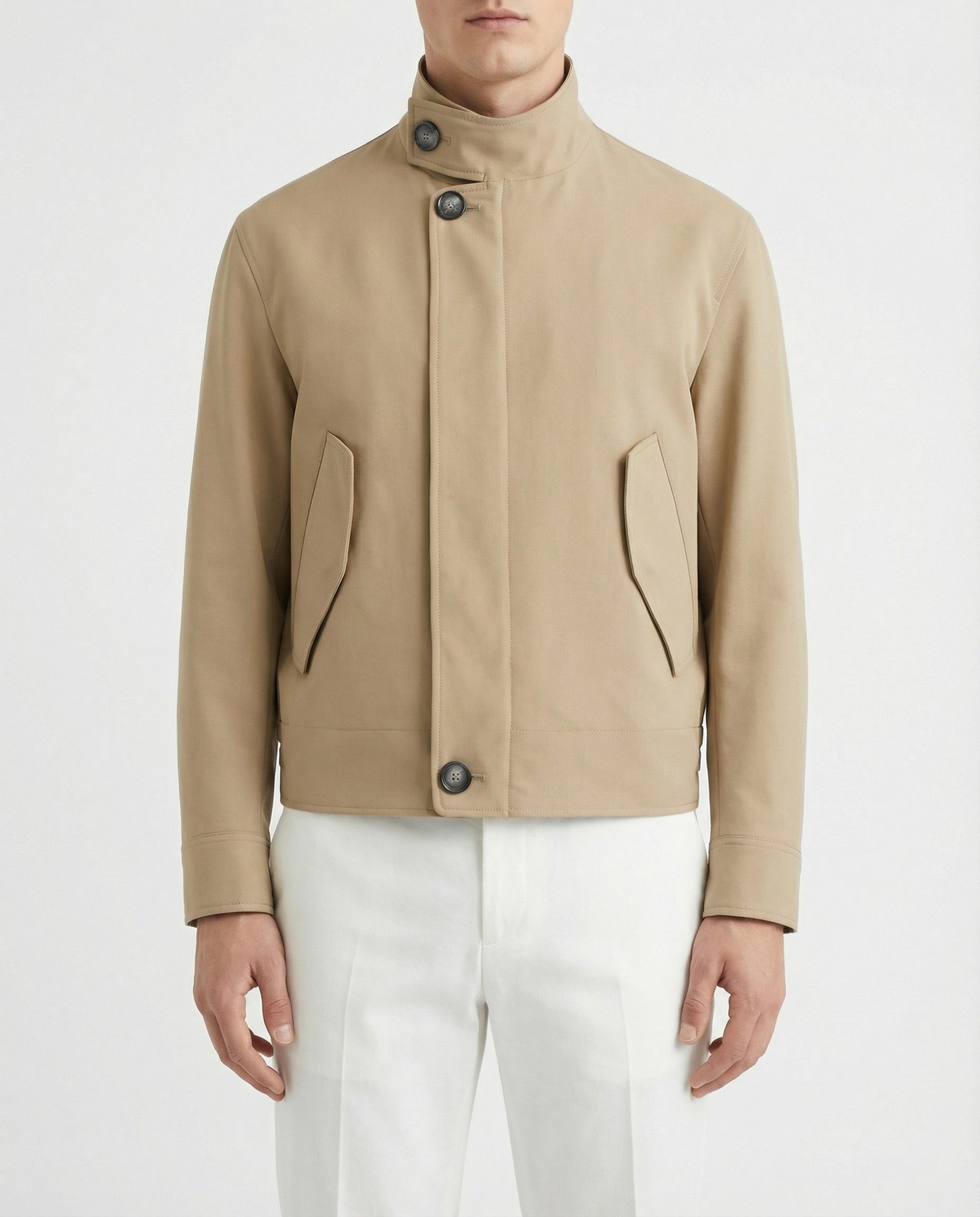 A classic Harrington jacket crafted from premium wool for a refined, lightweight silhouette.