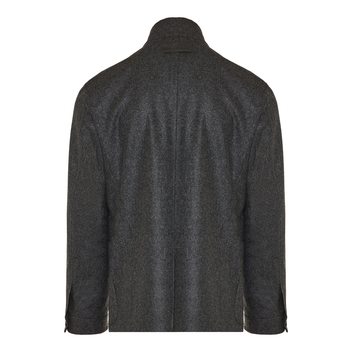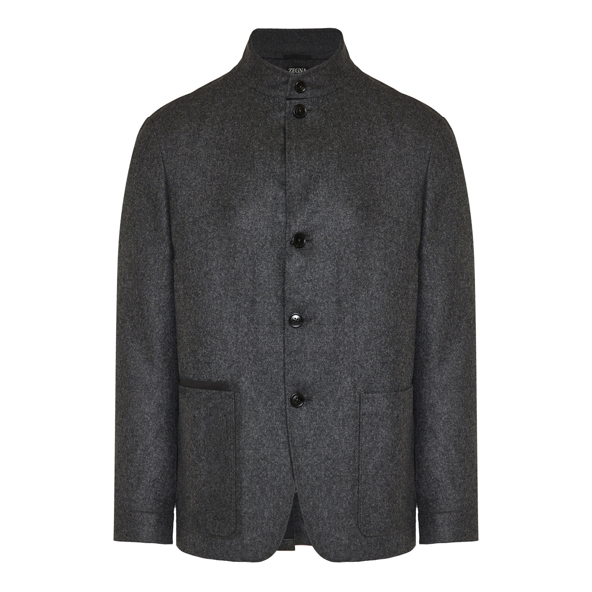 The Zegna Il Conte jacket combines luxurious Oasi Cashmere with calfskin leather trims, offering a refined and contemporary silhouette. Designed for versatility, it can be worn as a blazer or buttoned through the stand collar.