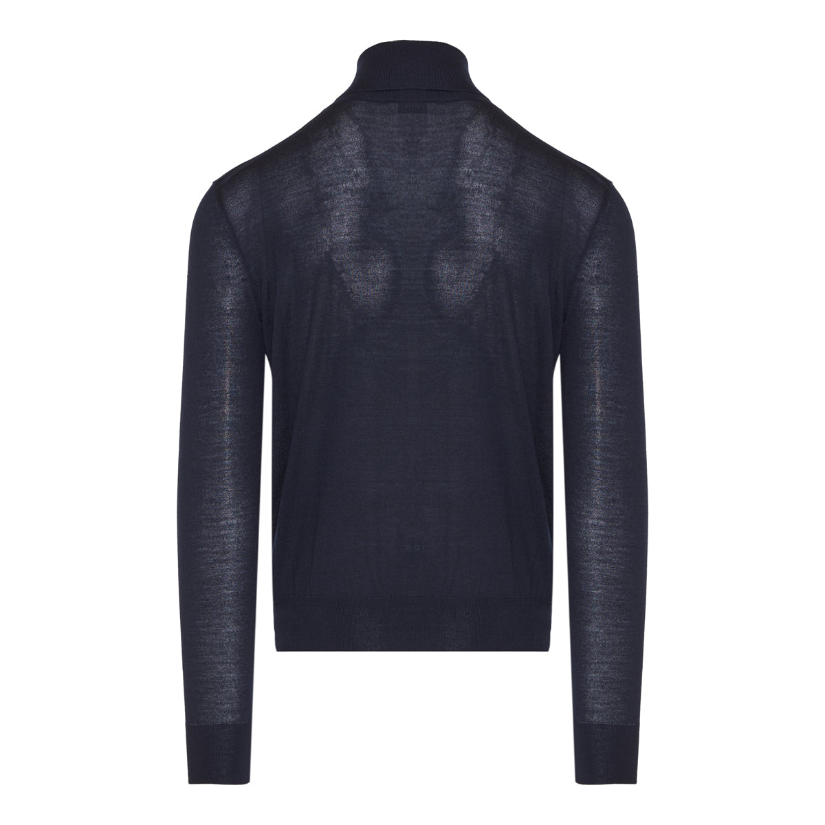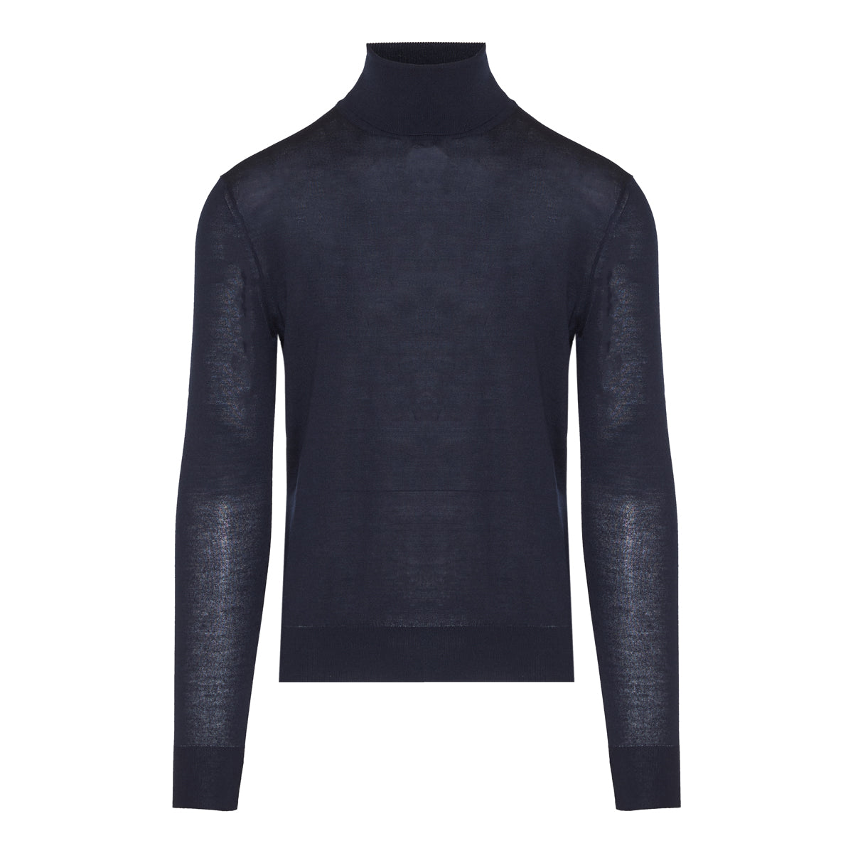 This Saint Laurent turtleneck is crafted from fine wool, designed in an elegant blue tone that highlights the maison’s understated sophistication. With its slim cut and classic neckline, it serves as a versatile wardrobe essential, seamlessly transitioning from refined layering under tailoring to a minimalist standalone statement.