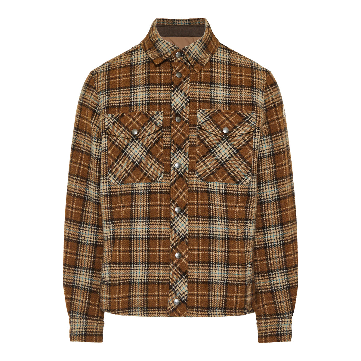 Moncler reinterprets utilitarian style through a refined lens with this checked wool shirt jacket. Expertly crafted from a soft wool blend in a warm check pattern, it’s designed for layering between seasons. The relaxed silhouette is enhanced with a point collar, front flap pockets, and snap-button fastening, balancing functionality with elevated craftsmanship. A subtle logo patch on the sleeve nods to Moncler’s heritage in alpine elegance.