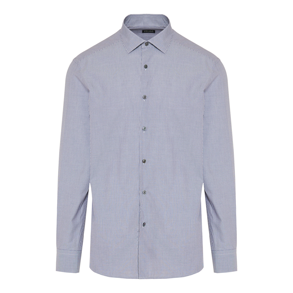 A refined men’s shirt from Z Zegna crafted in ultra-fine cotton with a subtle mini check pattern, a spread collar, and long sleeves — ideal for elevated formal or smart-casual wear.