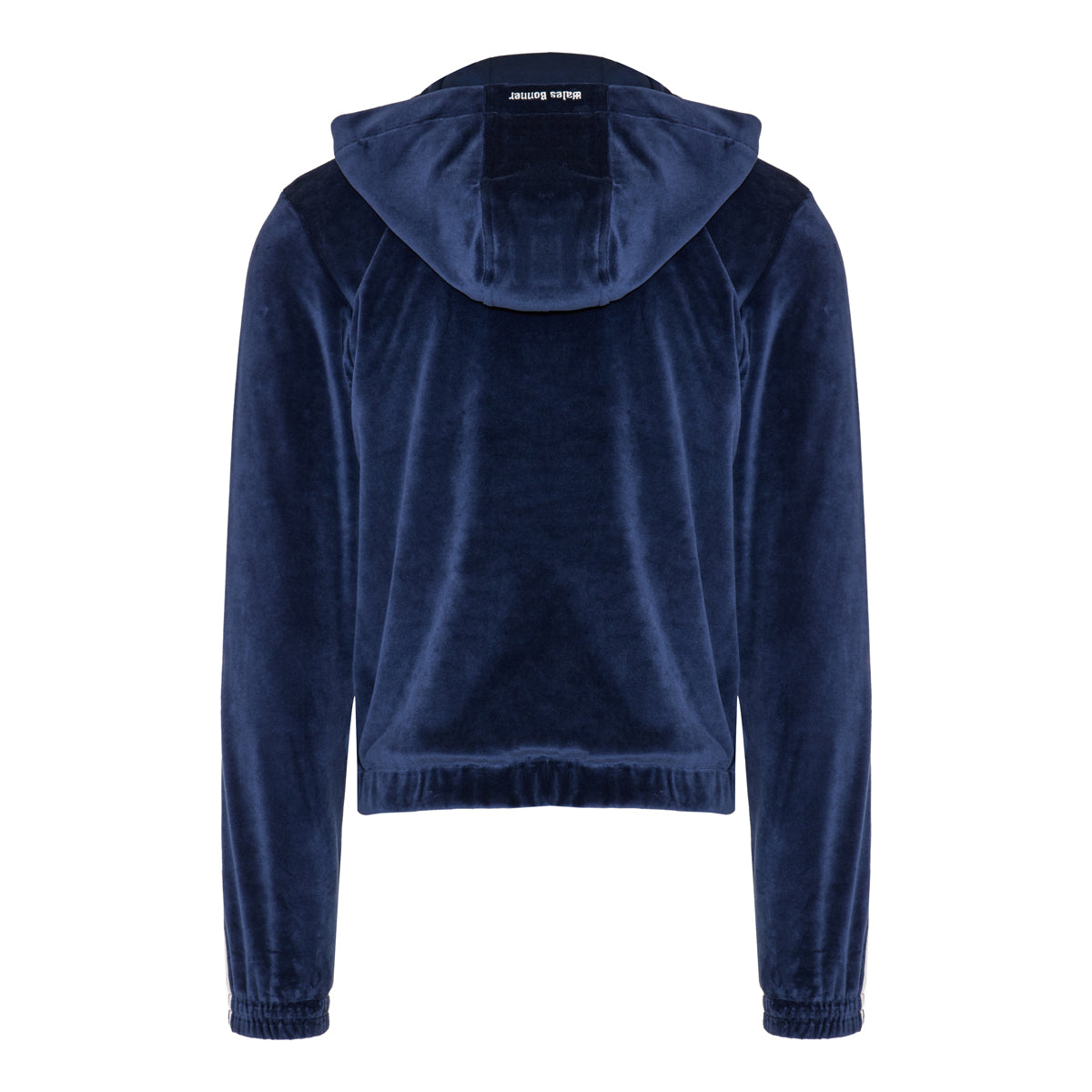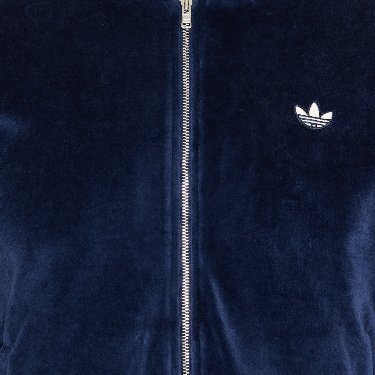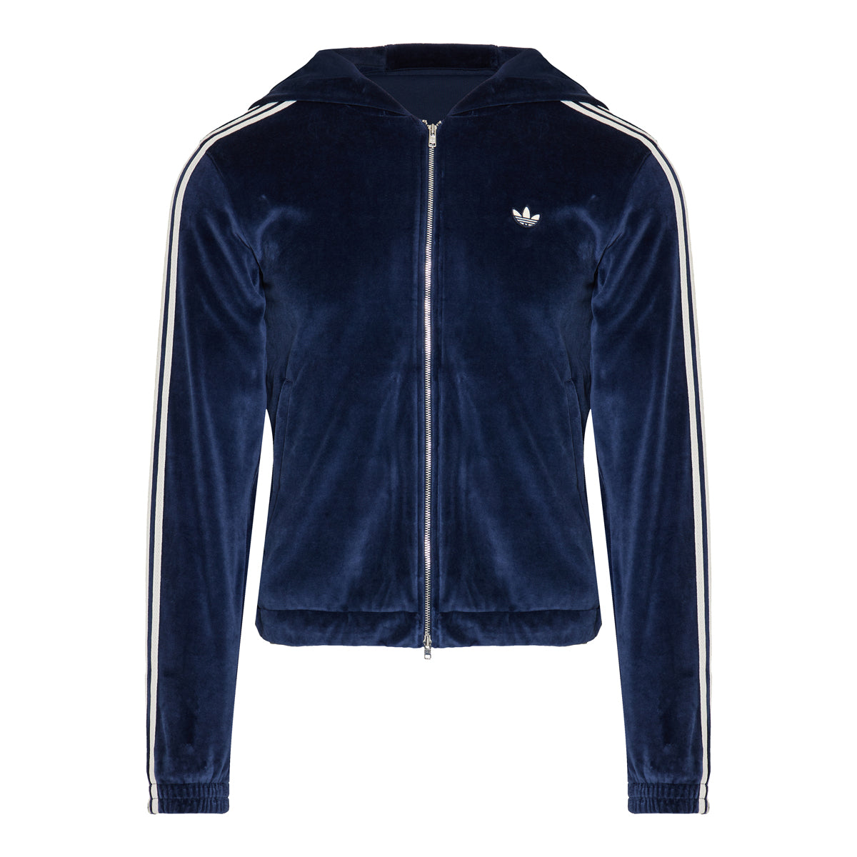 This collaboration hoodie from Adidas x Wales Bonner features a luxurious cotton-blend velvet finish, with front logos, striped trims, a two-way zip closure, and zipped pockets. Tailored for everyday sophistication, it suits elevated casual wear.