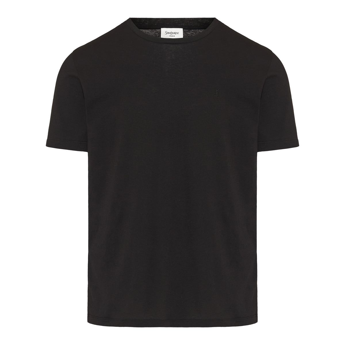 This Saint Laurent crew neck short sleeve t-shirt is crafted from 100% viscose, offering a luxurious feel and drape. The classic black color and minimalist design make it a versatile addition to any wardrobe.