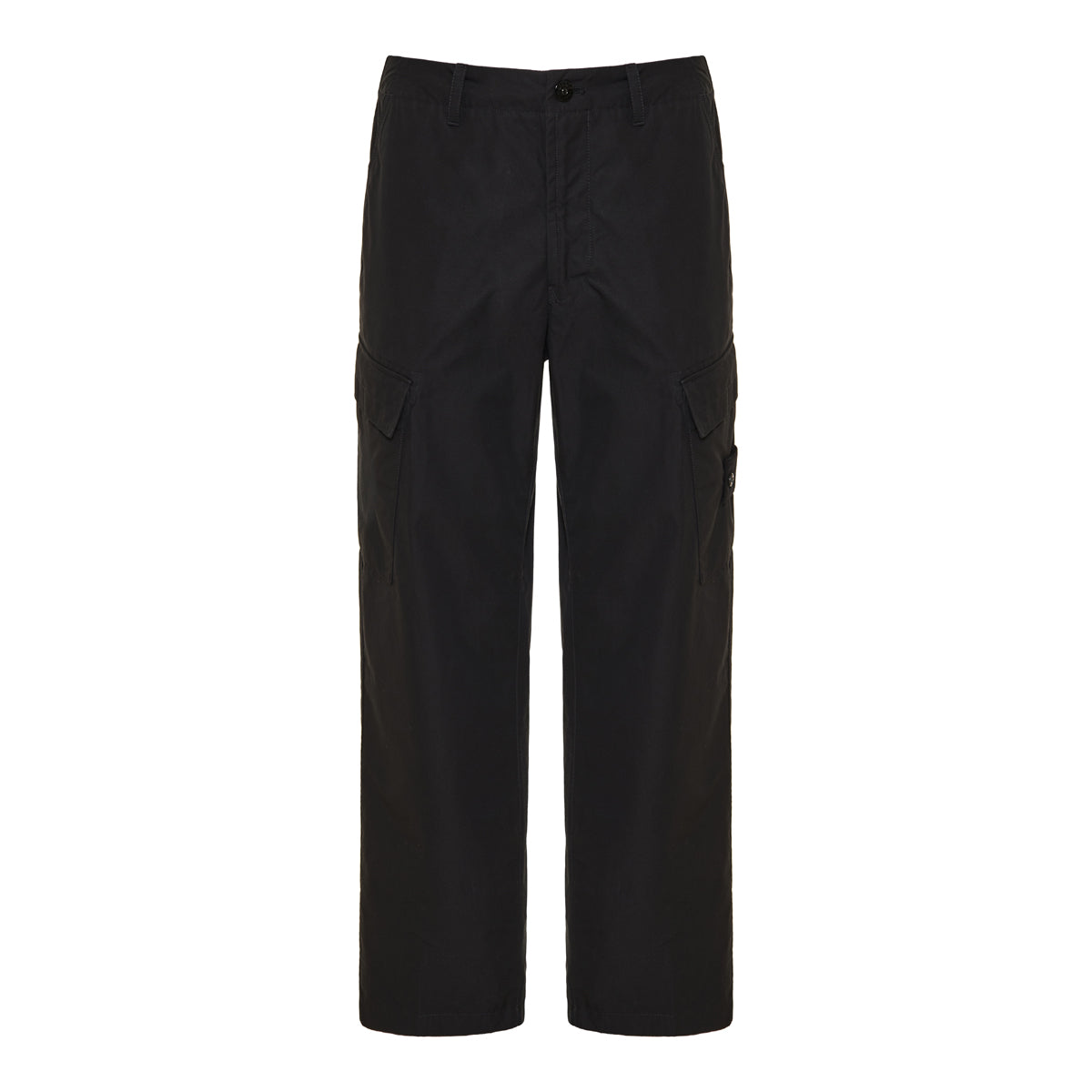Crafted from a cotton blend with a hint of stretch, these Stone Island trousers come in a versatile black tone. Designed with a tailored straight-leg fit, they feature a clean waistband, side and back pockets, and the brand’s detachable logo patch, delivering a balance of casual ease and refined utility.