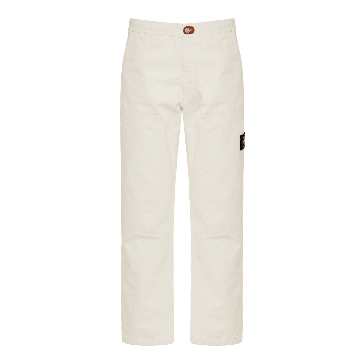 These Stone Island cotton gabardine pants offer a sleek silhouette, crafted in sturdy gabardine fabric with a logo patch on the side and a classic button and zip closure. With belt loops and practical side pockets, they provide both function and style—perfect for elevated casual wear.