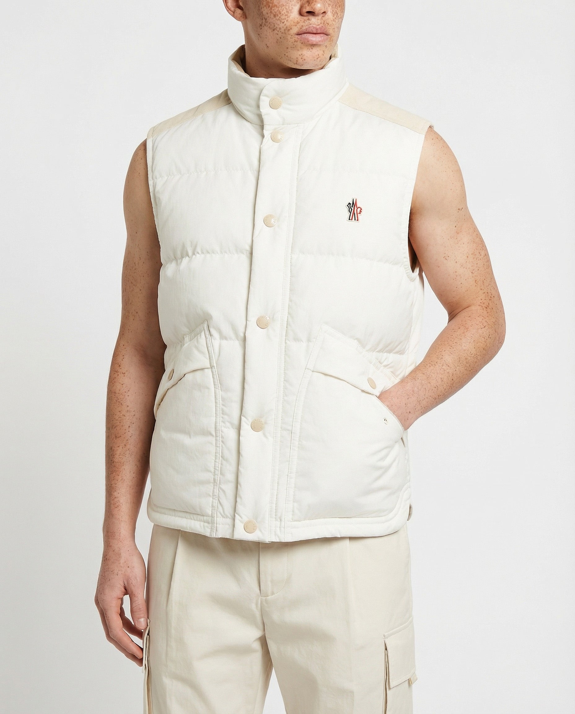 A sleek and versatile sleeveless jacket that combines Moncler’s technical expertise with modern, urban styling.
