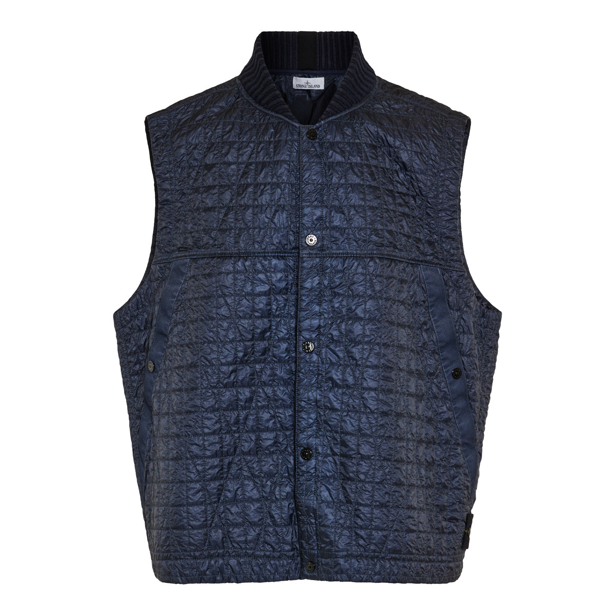 Stone Island’s Crinkle Reps quilted vest is crafted from resin-treated nylon for a distinctive texture and enhanced weather resistance. Quilted with lightweight padding, it features a zip closure, side pockets, and the brand’s iconic compass patch at the chest.