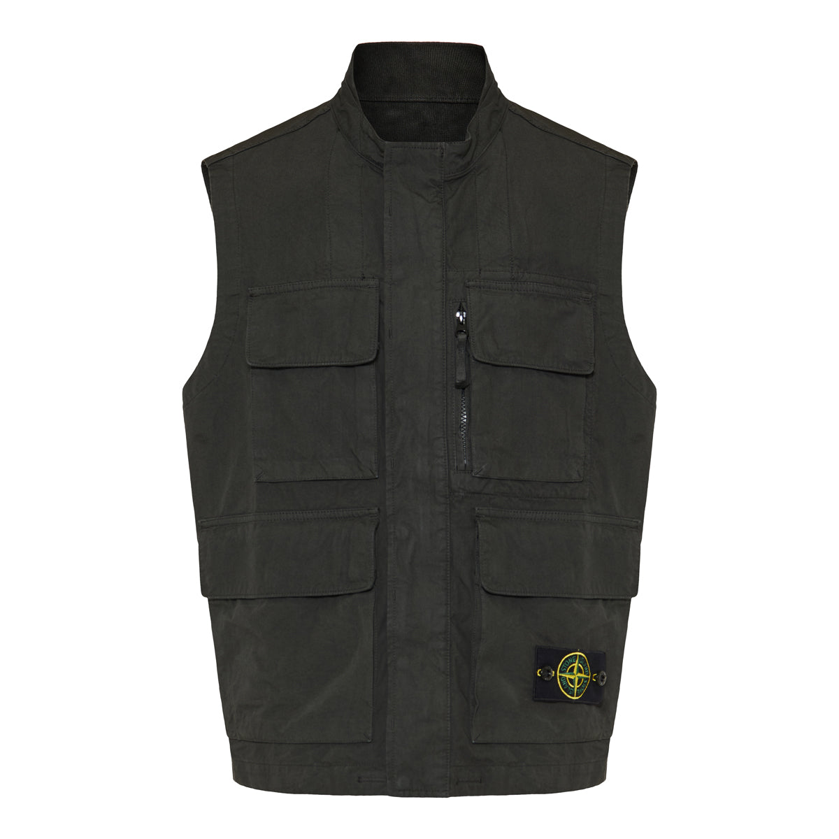 Crafted from lightweight cotton, this Stone Island vest in lead grey embodies utilitarian sophistication. Featuring multiple flap pockets, a zip closure, and the signature compass patch, it offers both practicality and urban edge. Perfect for layering during transitional weather, it effortlessly complements casual and outdoor looks.