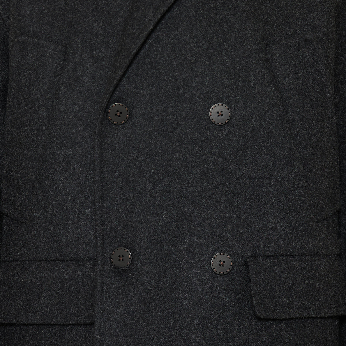 This double-breasted pea coat from Fendi is crafted in Italy from 100% virgin wool. It features a six-button front, wide lapels, and dropped shoulders for a relaxed fit. The coat is unlined and adorned with a tone-on-tone FF patch at the nape. Ideal for adding a touch of luxury to your outerwear collection.