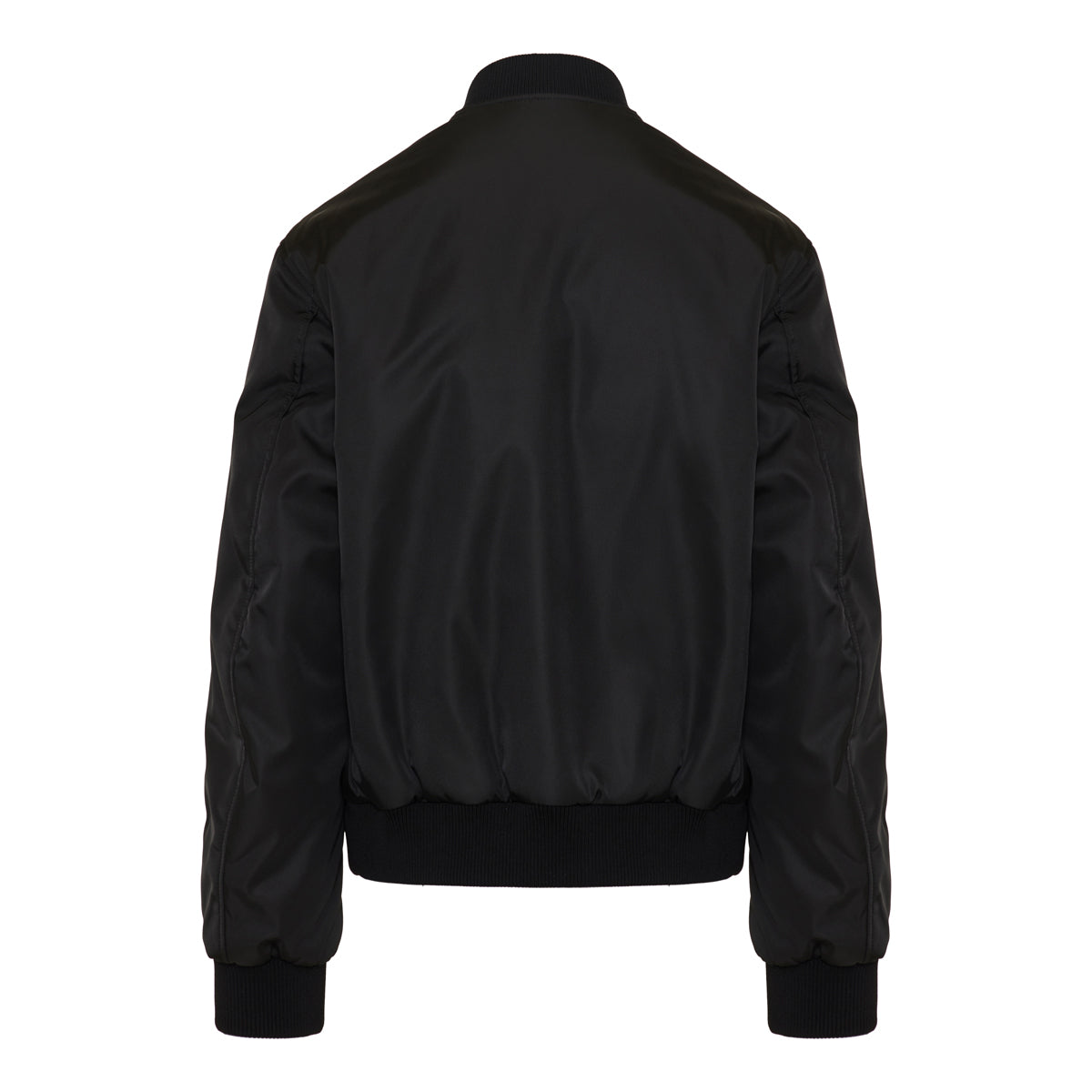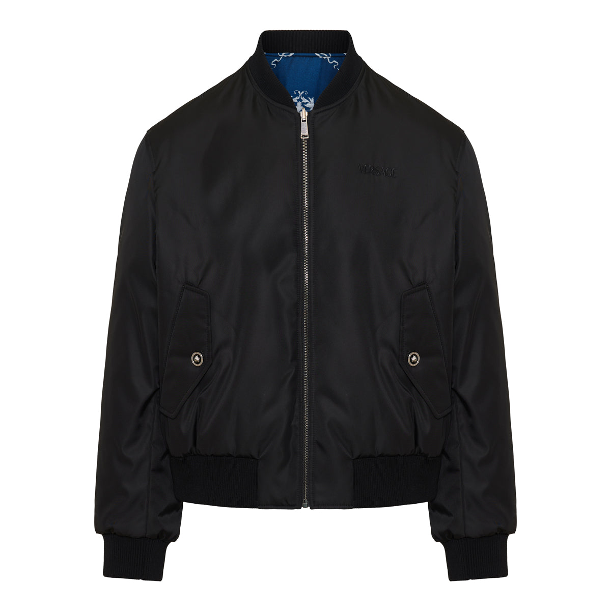 A versatile blouson jacket designed for dual styling — one side showcasing bold graphic print, the other offering a sleek, monochrome finish. With a spread collar, snap-button closure, elastic cuffs and side pockets, this piece blends streetwear edge with refined luxury; ideal for elevated casual outfits or transitional‑season layering.