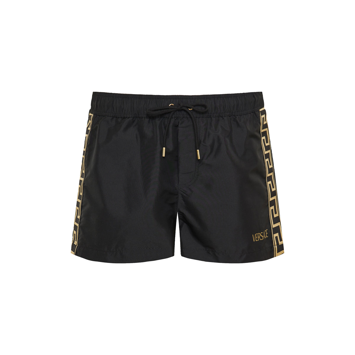 A refined swimwear piece for the style‑conscious man, blending iconic design and functionality. The elastic drawstring waistband and signature Greca border along the side bands lend a subtle mark of sophistication. With a mesh slip lining and practical pockets, these shorts are tailored for relaxed beach or poolside wear — perfect for elegant summer escapes.