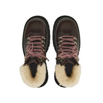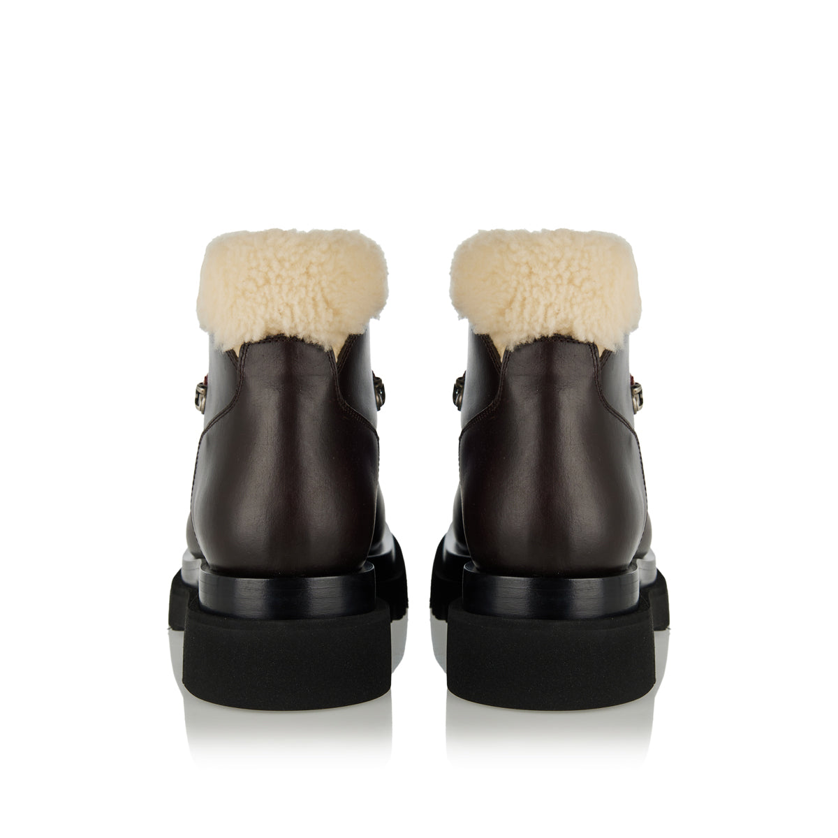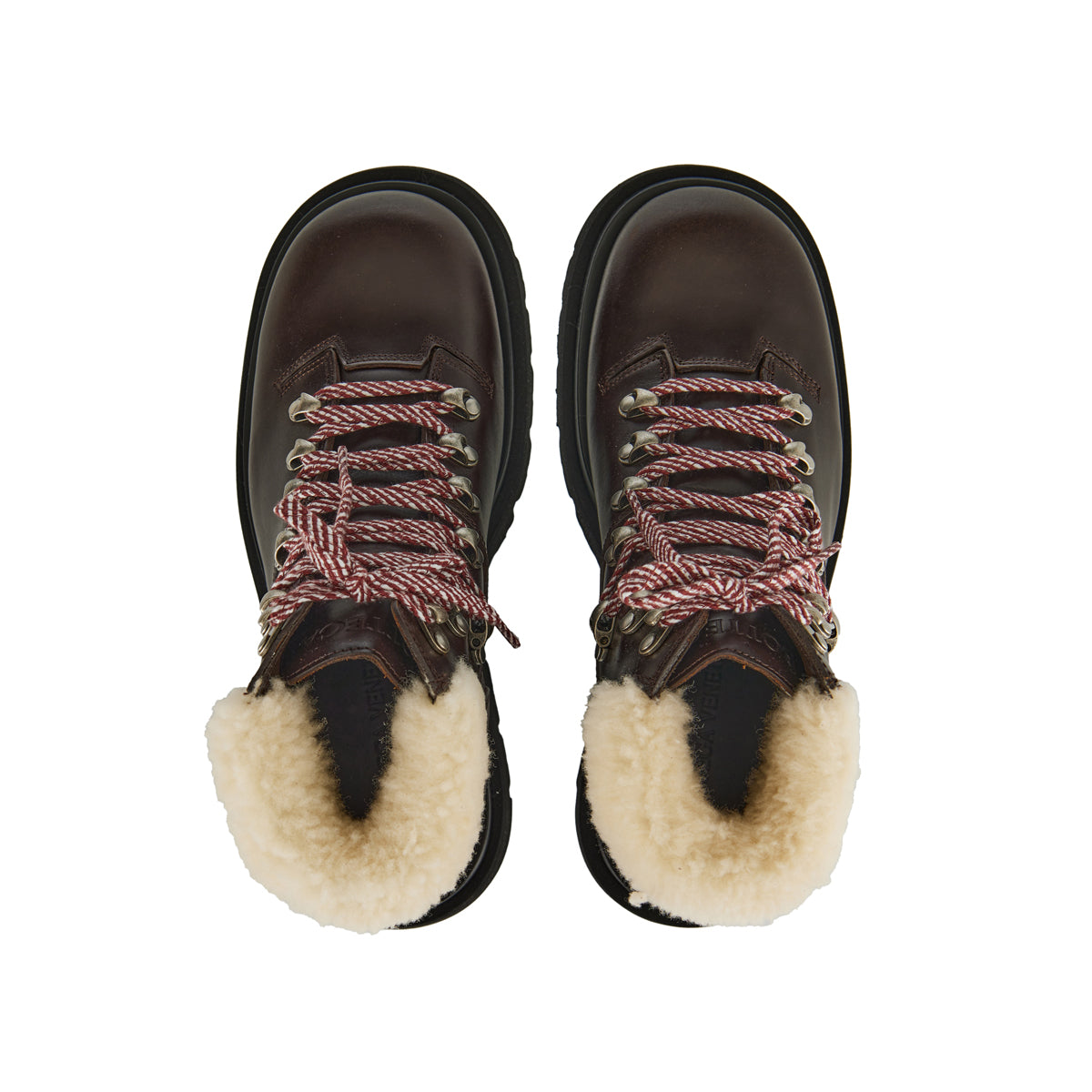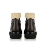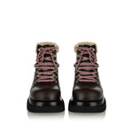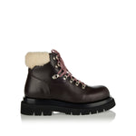 Rugged-meets-refined boots from Bottega Veneta crafted in smooth calfskin with a thick lug sole, tonal hiking laces, and padded ankles — designed for elevated outdoor style with luxury craftsmanship.