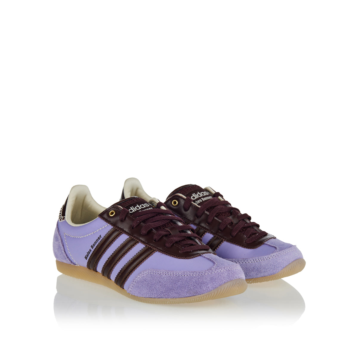 These adidas Originals × Wales Bonner Japan sneakers combine premium leather construction with refined design, ideal for elevated everyday wear or stylish street‑luxury looks. Featuring a cream white upper with light purple and night red accents, they showcase collaboration branding and a gum‑rubber herringbone‑tread outsole for heritage flair and modern edge.