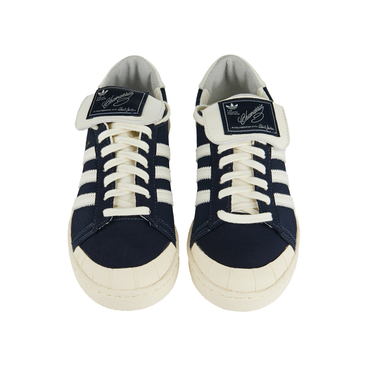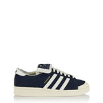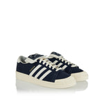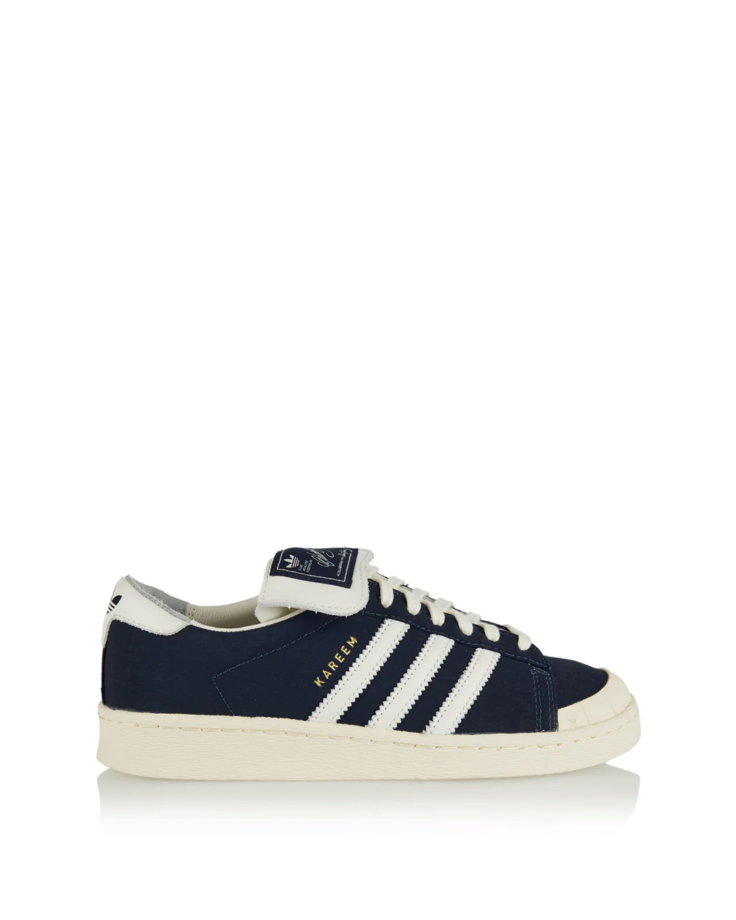 Collaborative adidas x Willy Chavarria Jabbar Low sneakers in premium nylon and leather with vintage-inspired Legend Ink, Off White and Cream White tones. Featuring a folded tongue, co-brand detailing and textured rubber sole, these low-top sneakers fuse archival basketball heritage with refined contemporary design — ideal for elevated everyday styling or modern casual outfits.