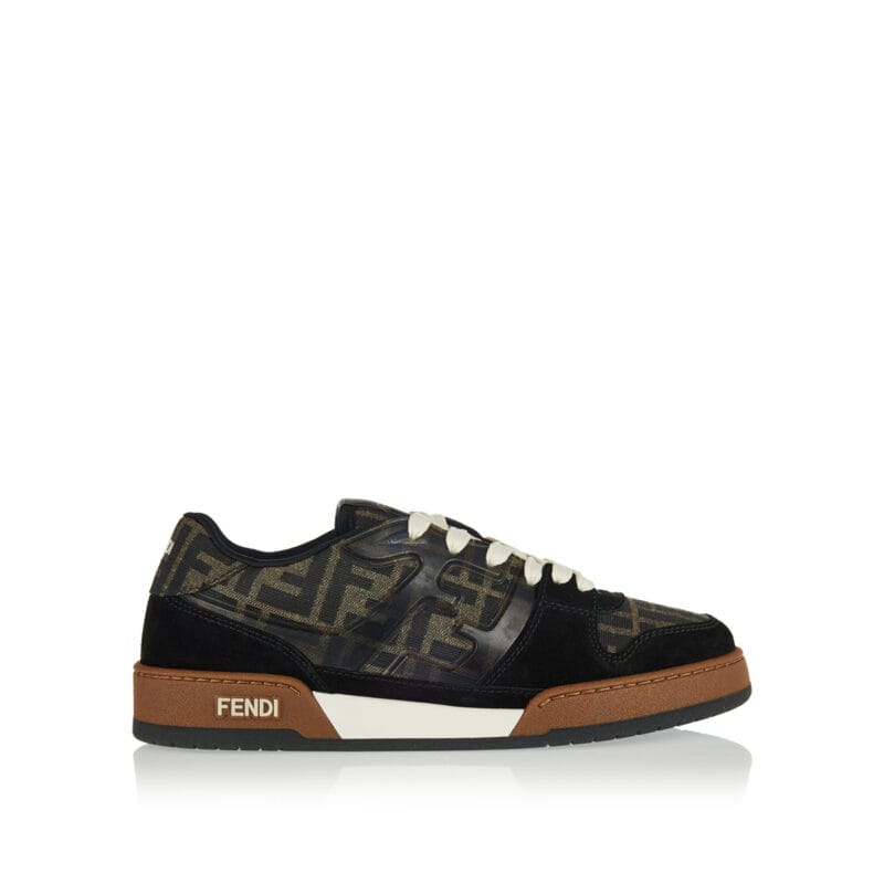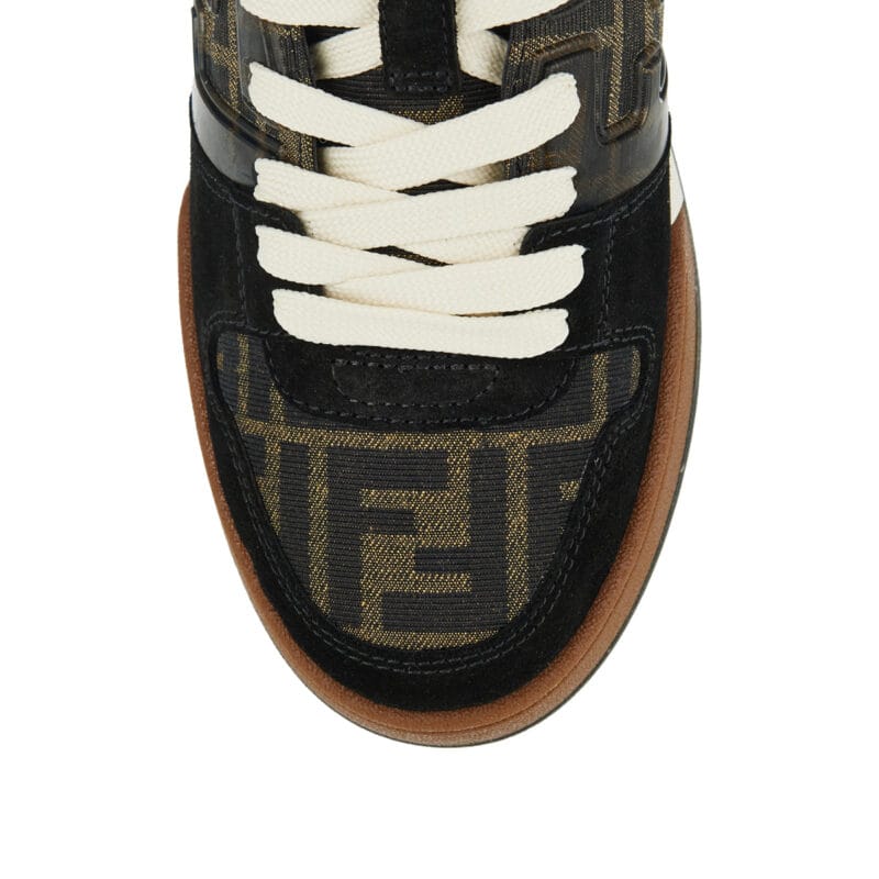 Fendi Match sneakers are crafted from FF jacquard fabric and black suede. They feature round toe, lace-up fastening, FF applique at the sides and rubber sole.