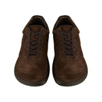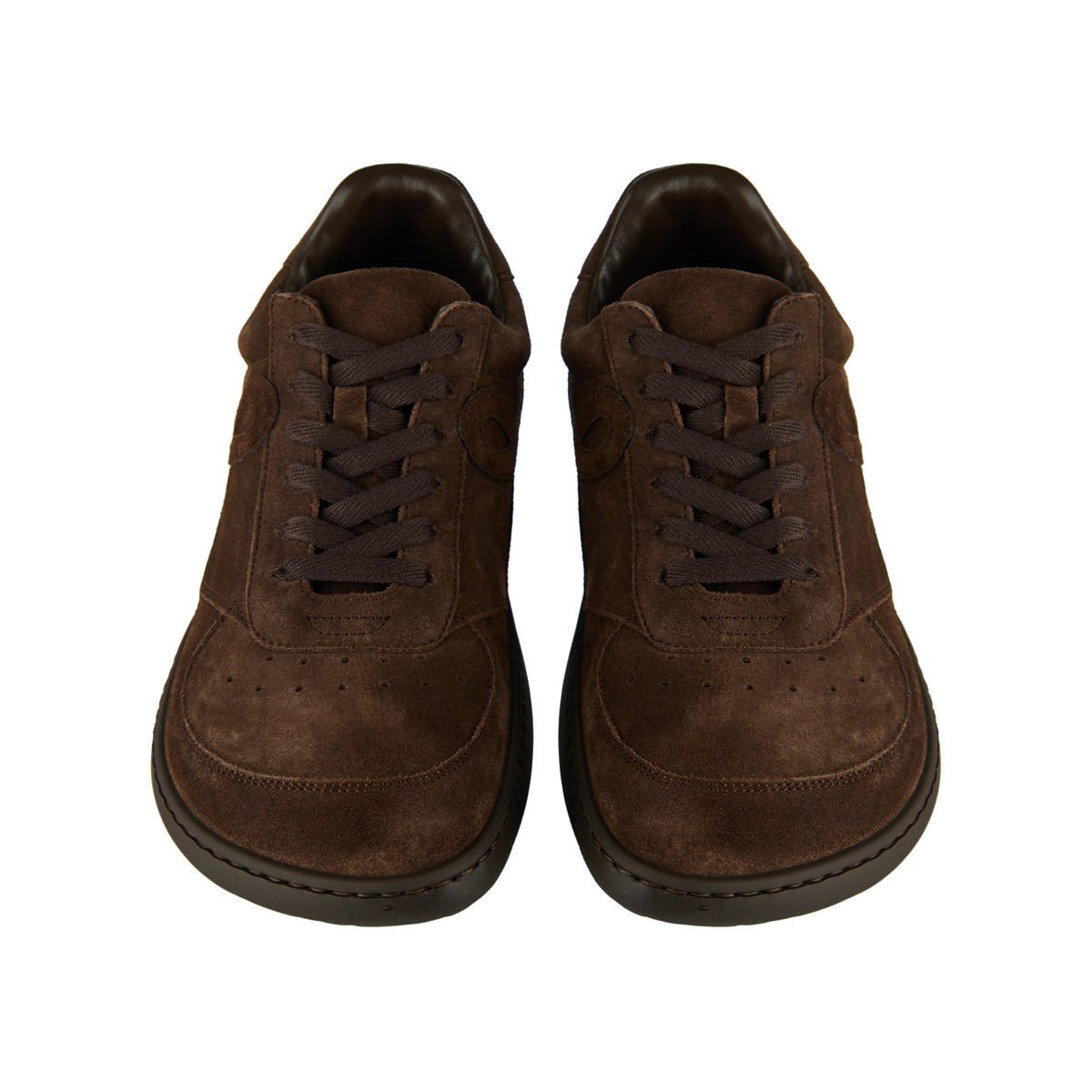 The Jambo sneaker by Loewe is crafted from soft calf suede in a deep dark brown, shaped with an asymmetric toe and grounded by an Anagram-embossed rubber cupsole. A monochrome finish and subtle logo details refine its contemporary silhouette, making it a polished yet effortless choice for elevated daily wear.