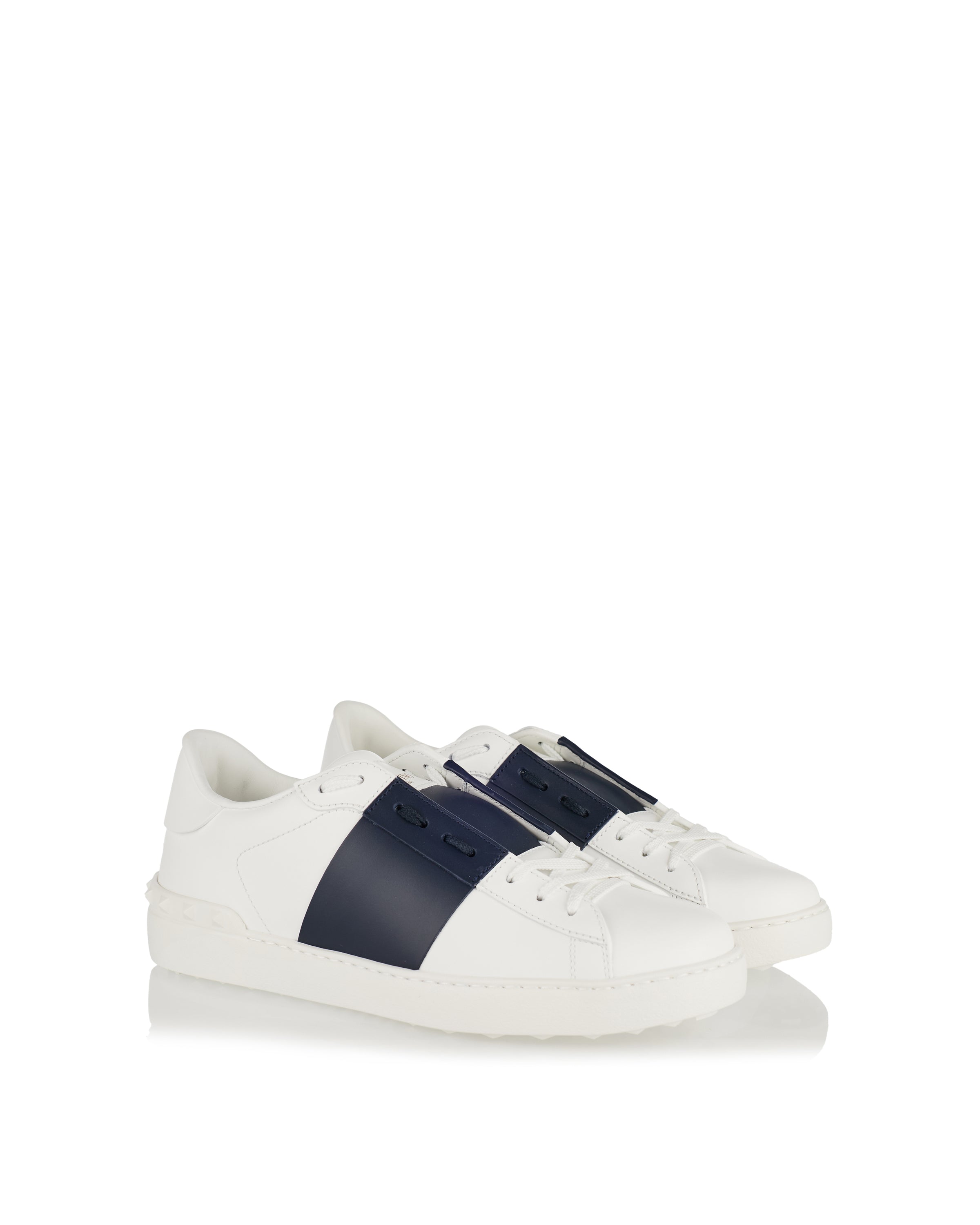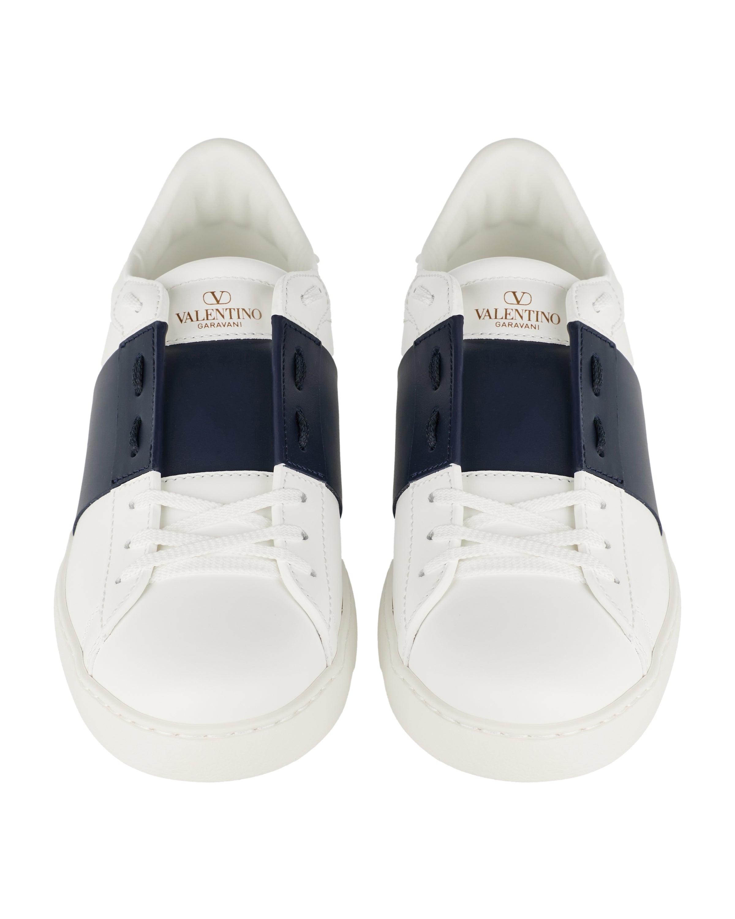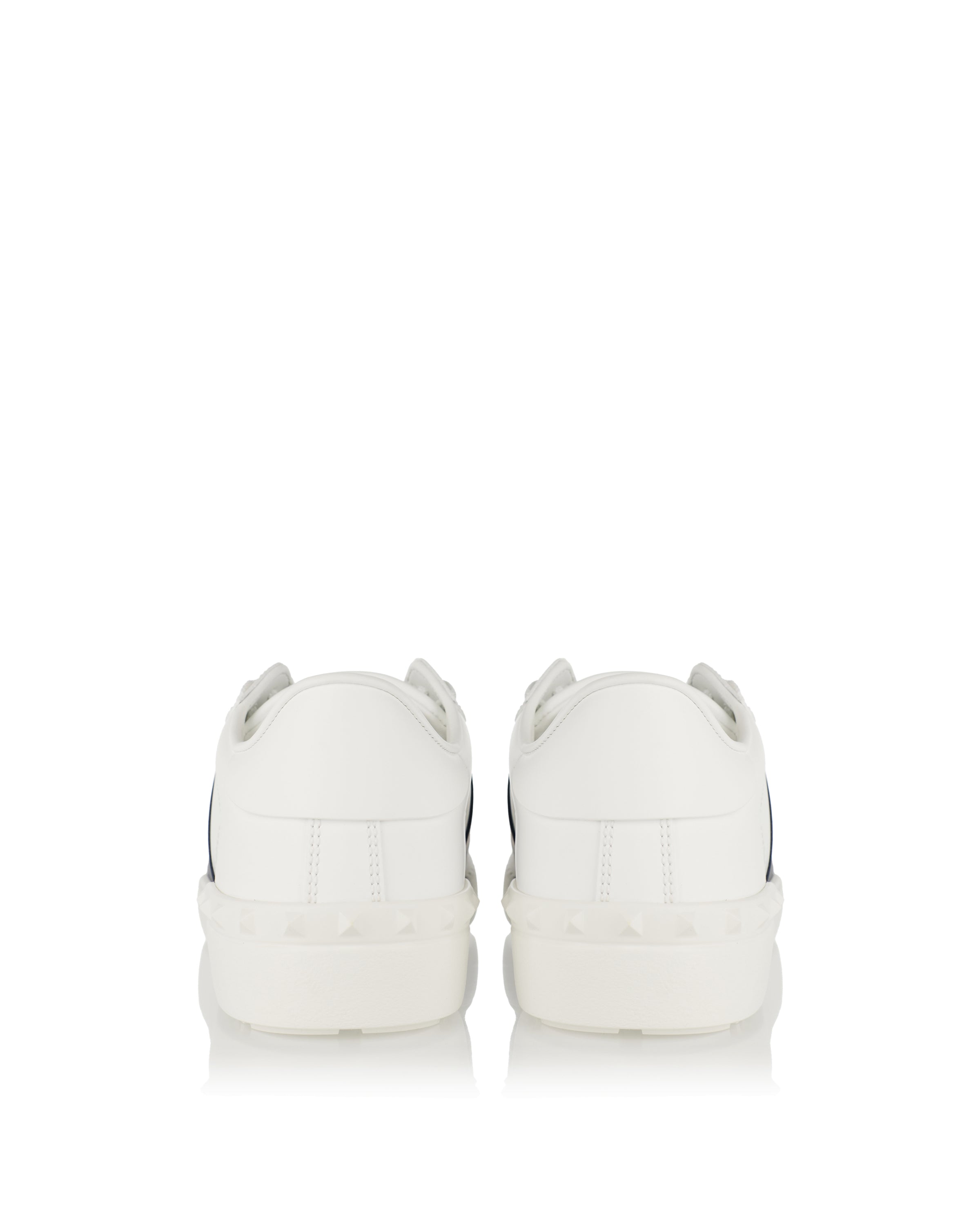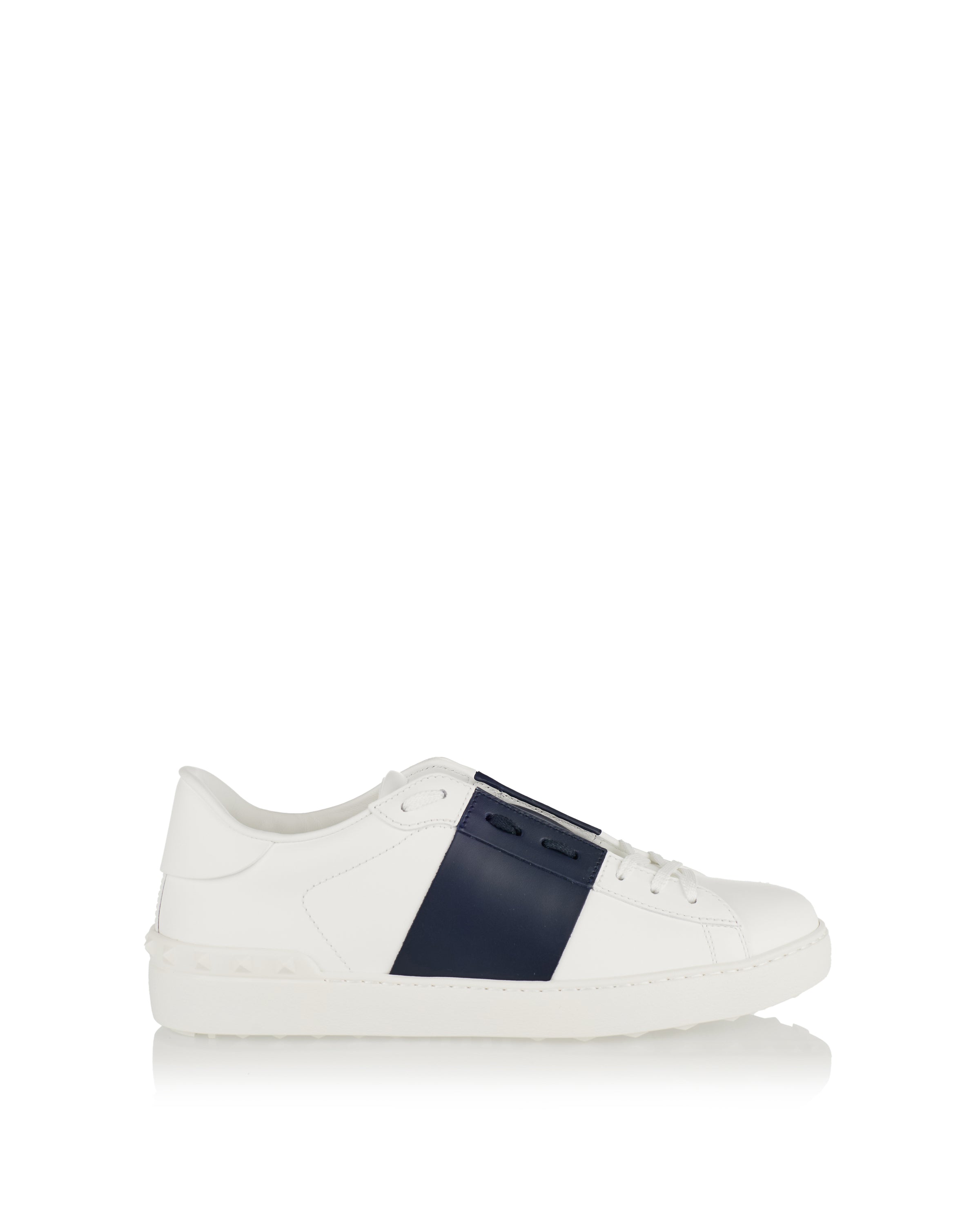 Iconic Valentino Garavani Open sneakers in premium calfskin with contrasting leather band and signature rubber‑studded sole. Featuring a classic lace‑up silhouette and round toe, these Italian‑made sneakers blend minimalist design with subtle heritage detail — ideal for refined everyday wear or polished street‑style looks.