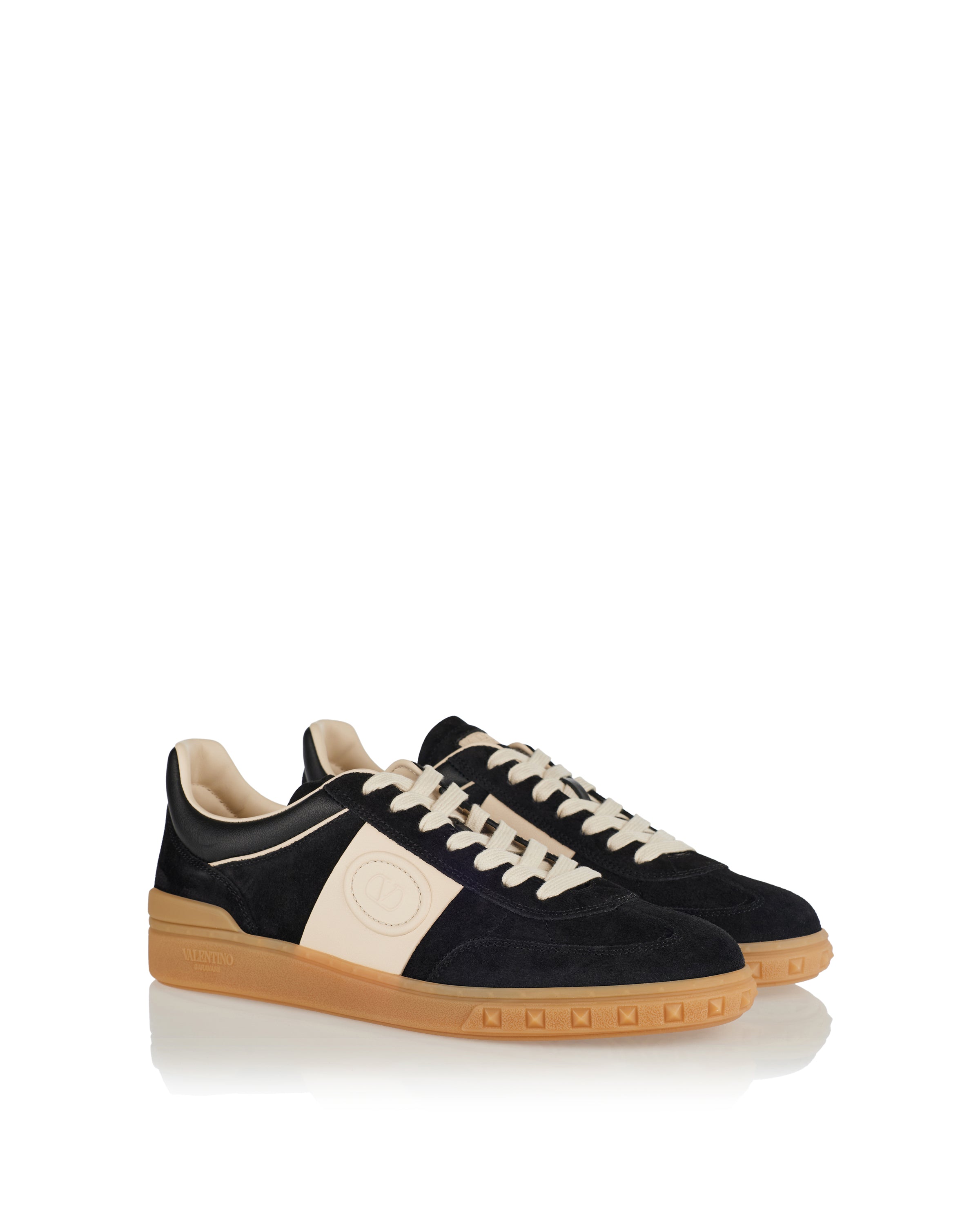 Luxury low-top sneakers crafted from suede and leather, ideal for casual and smart-casual outfits. Featuring contrast stripes, iconic VLogo detailing, and a round toe silhouette, the Valentino Garavani Upvillage sneakers combine Italian craftsmanship with contemporary style.
