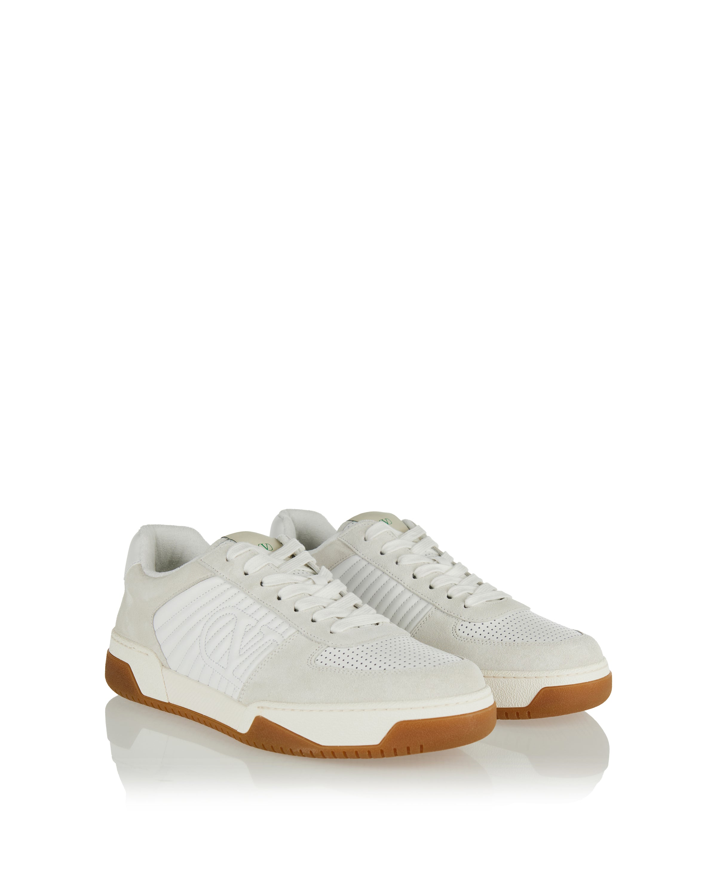 Refined Valentino Garavani Sparry suede and leather sneakers in crisp white, crafted in Italy with tonal suede and smooth leather panels, a round toe and lace-up fastening. Designed for elevated casual and everyday wardrobes, they combine Italian craftsmanship with timeless contemporary style.