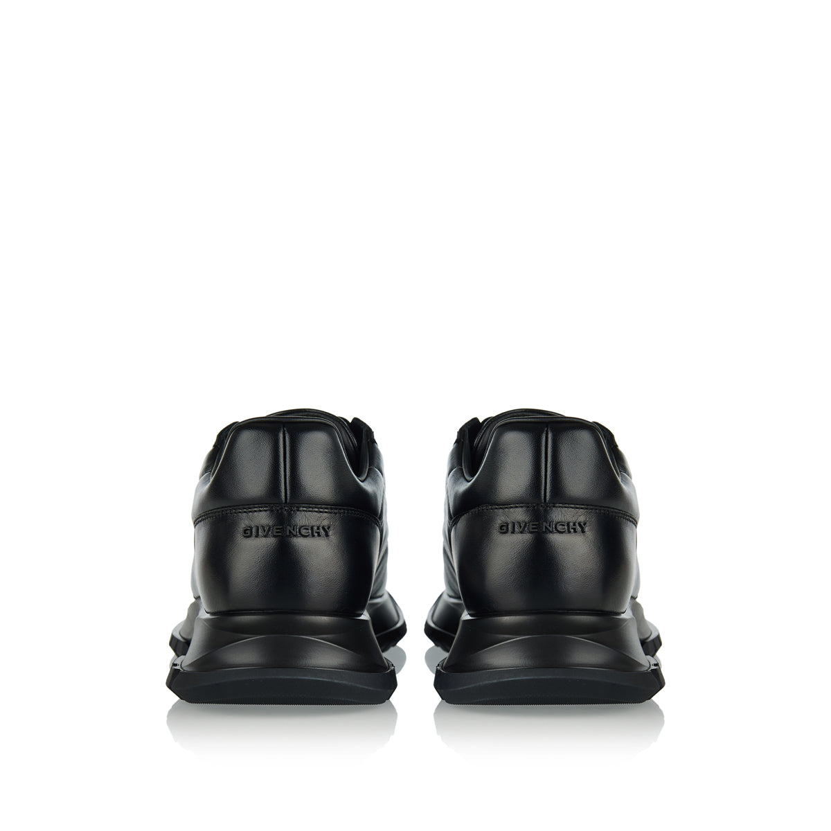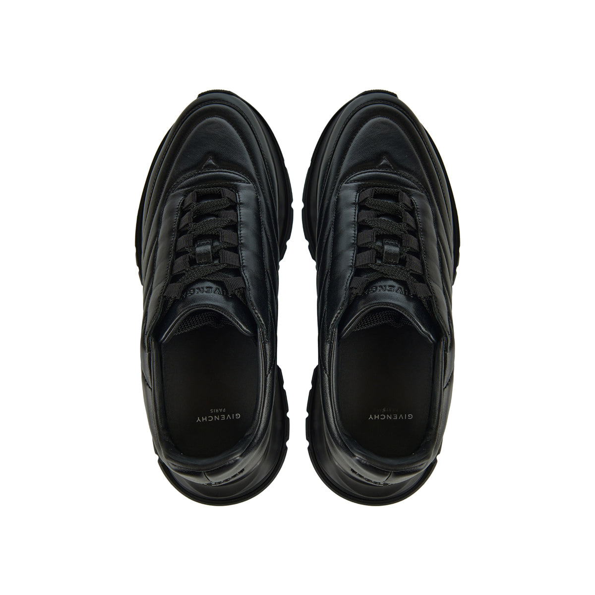 Givenchy’s low-top sneakers are made from shiny padded black leather. Featuring tonal laces, a rubber sole, and the embossed 4G logo, they bring a sleek, contemporary edge to casual styling.