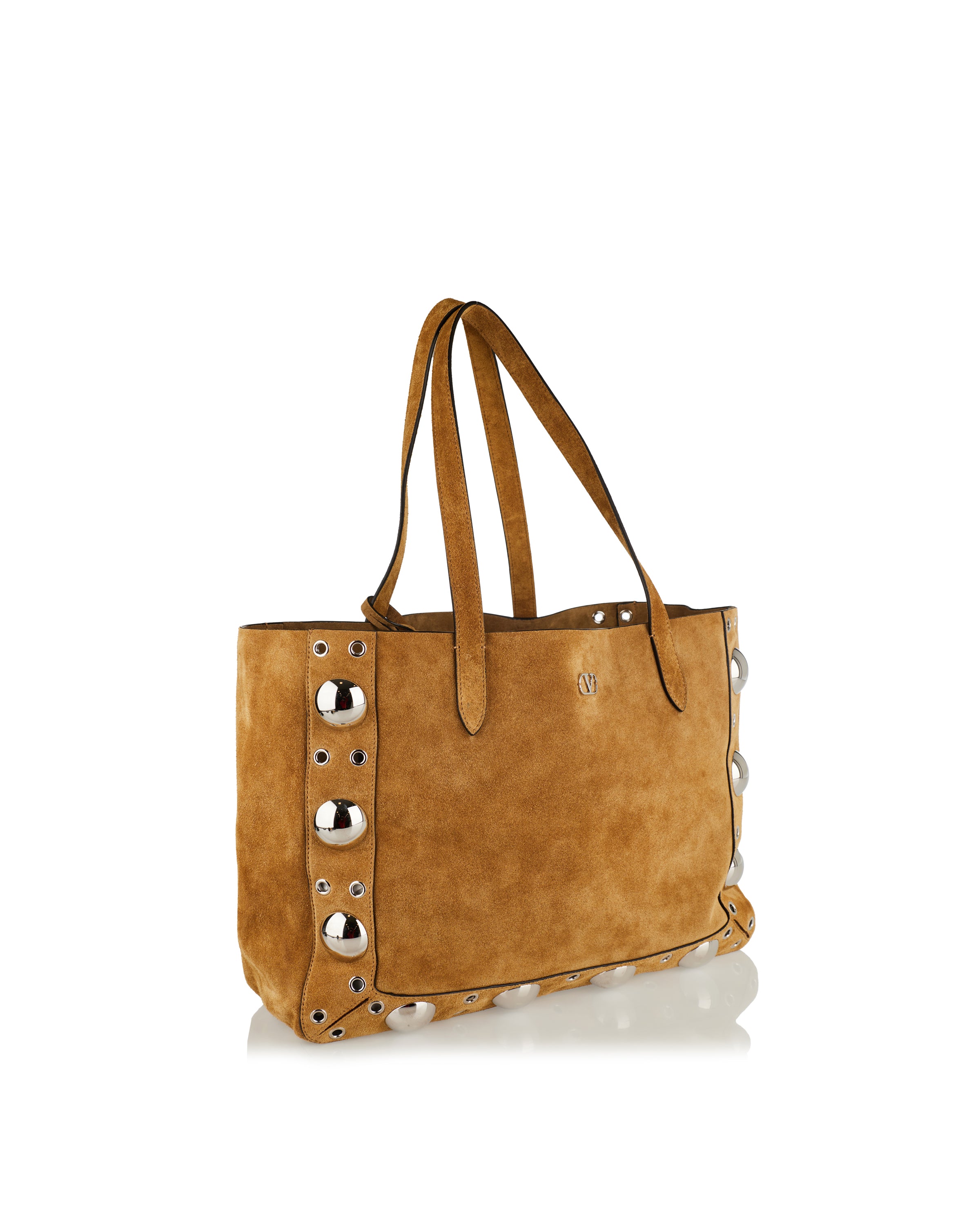 A sophisticated suede shopping bag ideal for both casual and formal settings. Featuring soft Havana beige suede with structured silhouette and top handles, the Valentino Garavani Nellcôte bag offers effortless elegance and functional luxury for everyday wear.