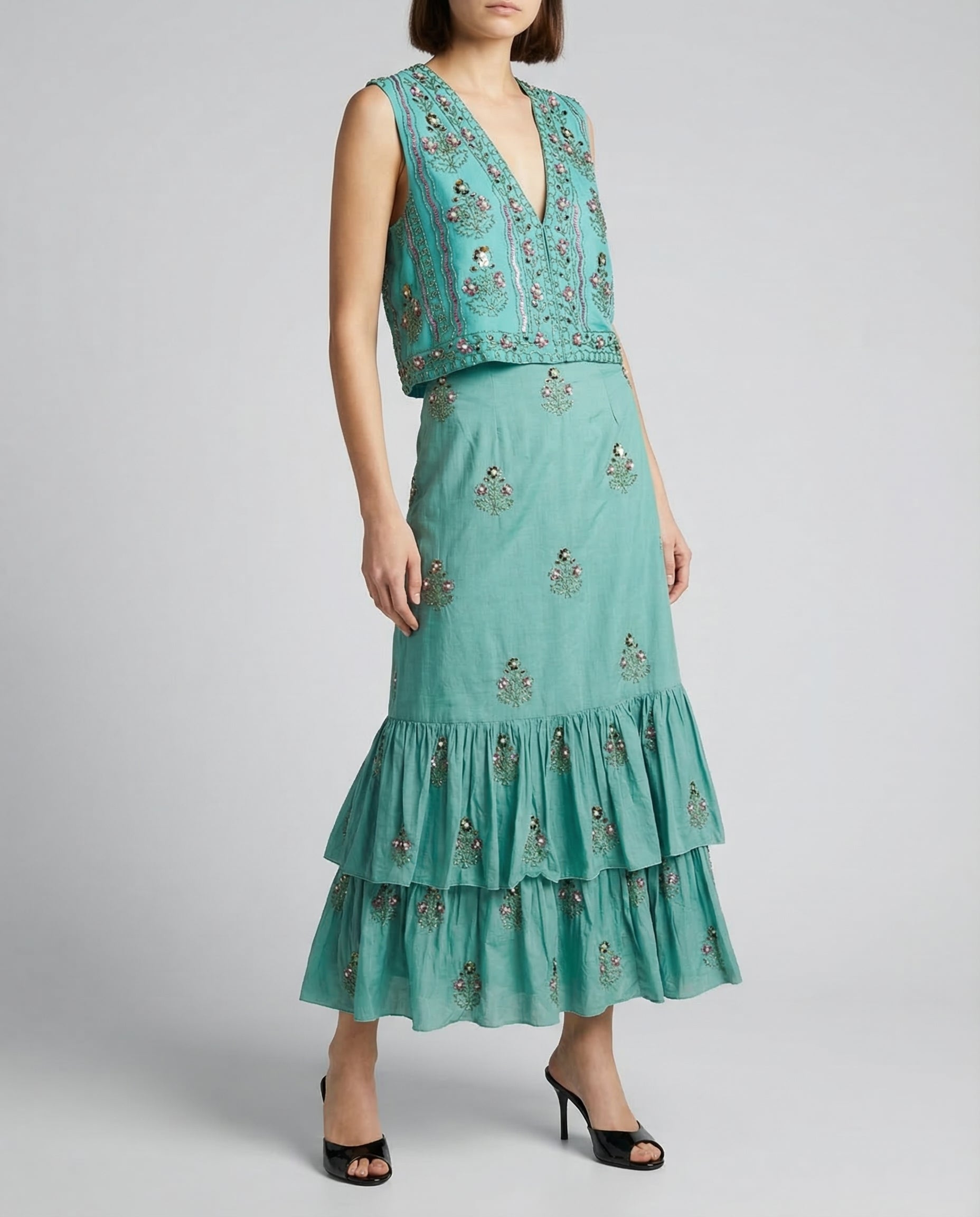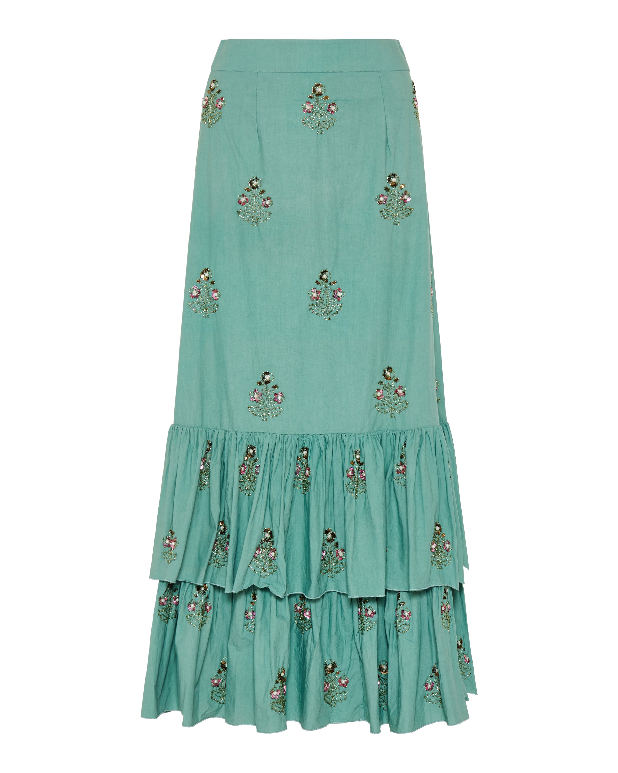 Simone embroidered tiered midi skirt
