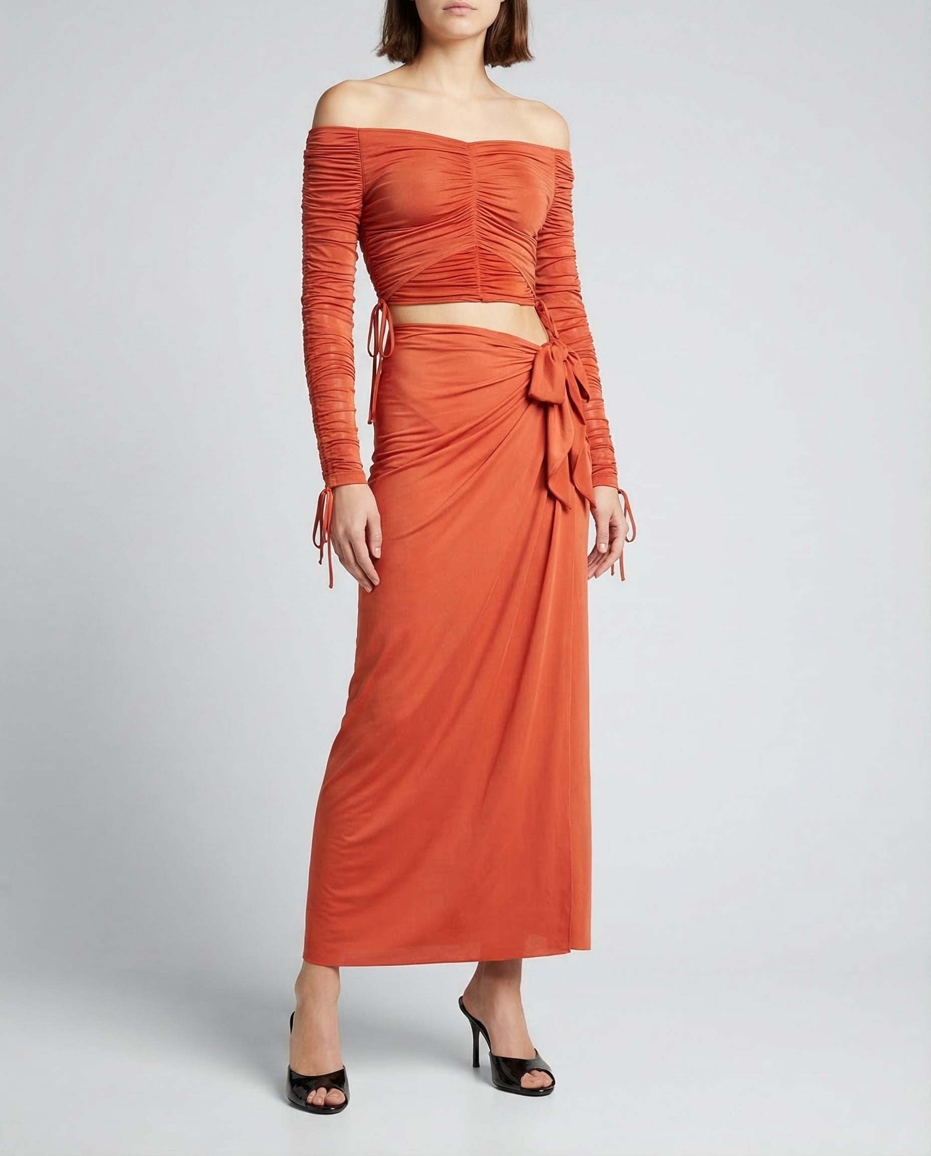Ruched off-shoulder cropped top