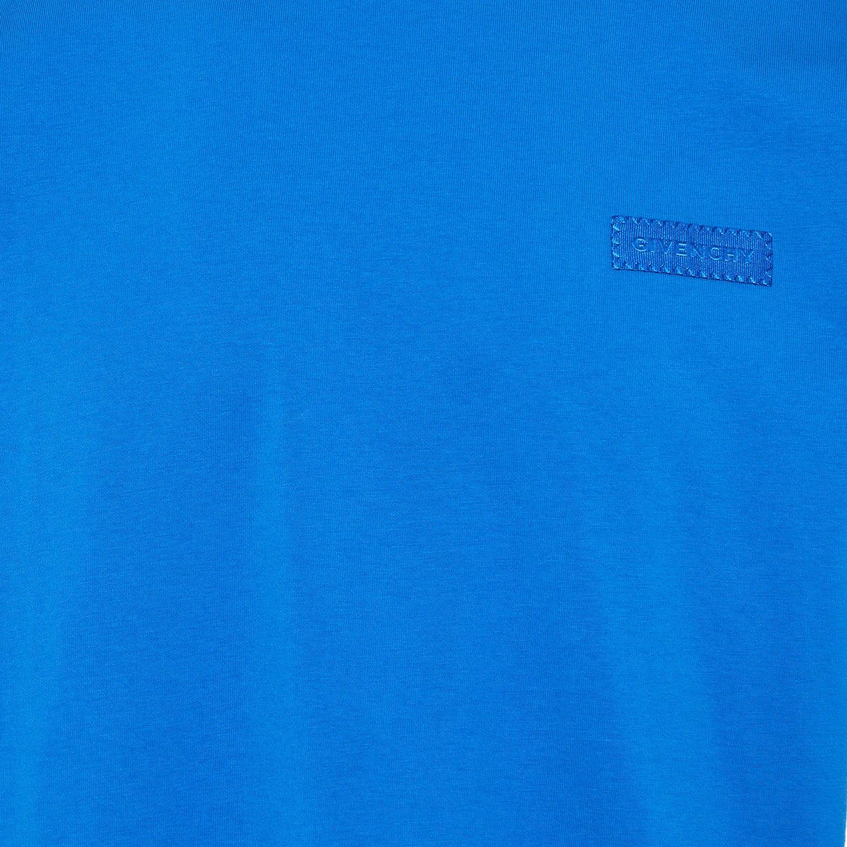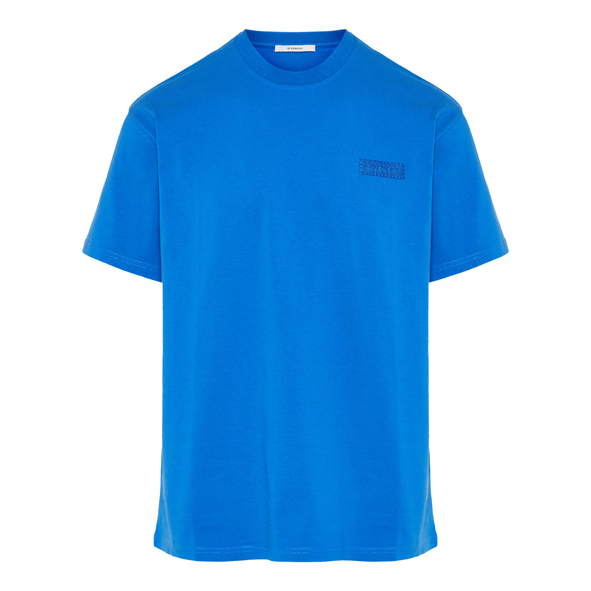 A premium short-sleeved t-shirt in electric blue crafted for elevated casual wear. Made in Portugal in 100% cotton, it features a crew neck and a gros-grain patch with the GIVENCHY signature and zigzag seam detailing on the chest. Elegant yet relaxed for sophisticated daywear.