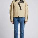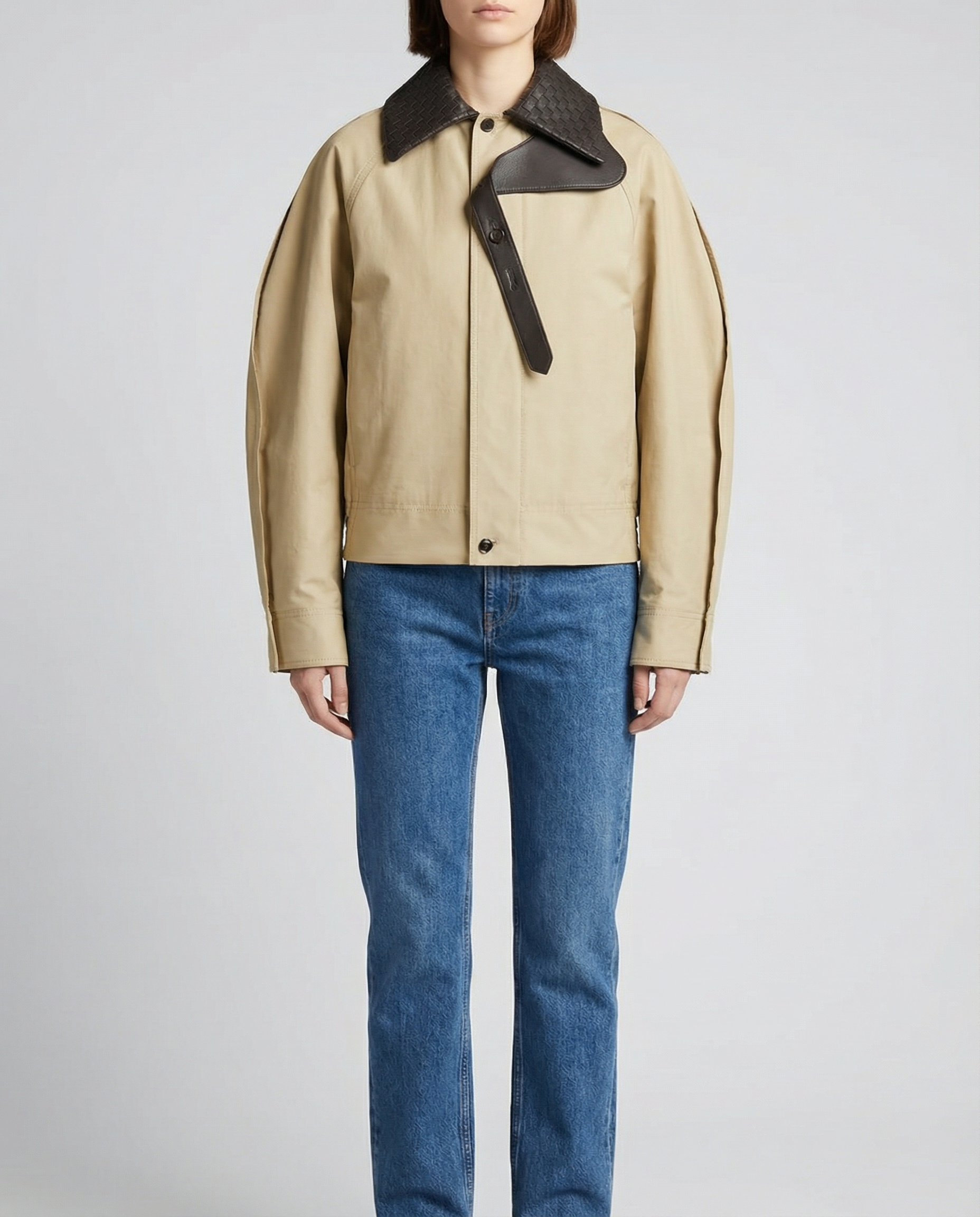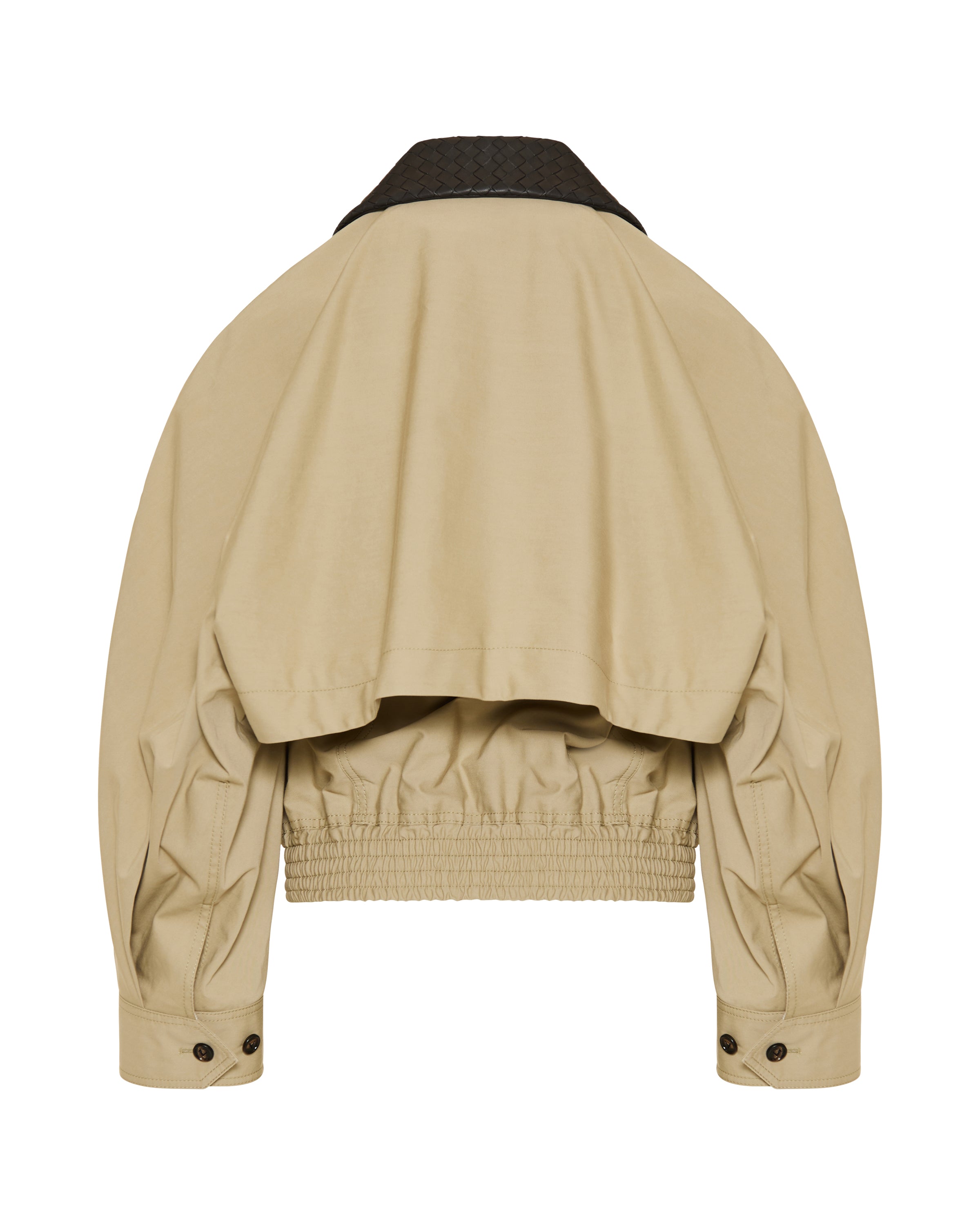 A relaxed, structured blouson in soft fabric, accented with signature intrecciato leather trims for a refined, modern finish.