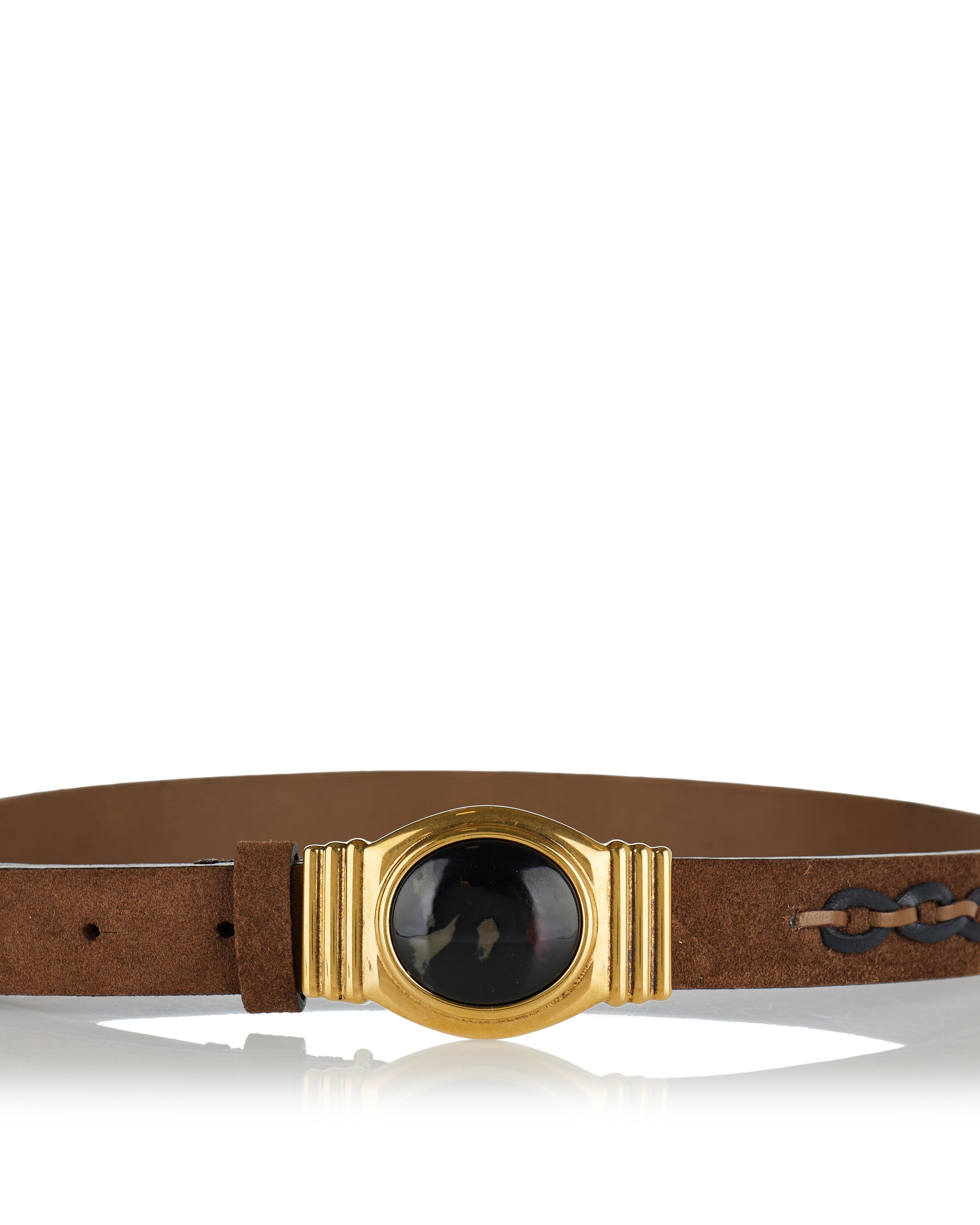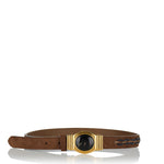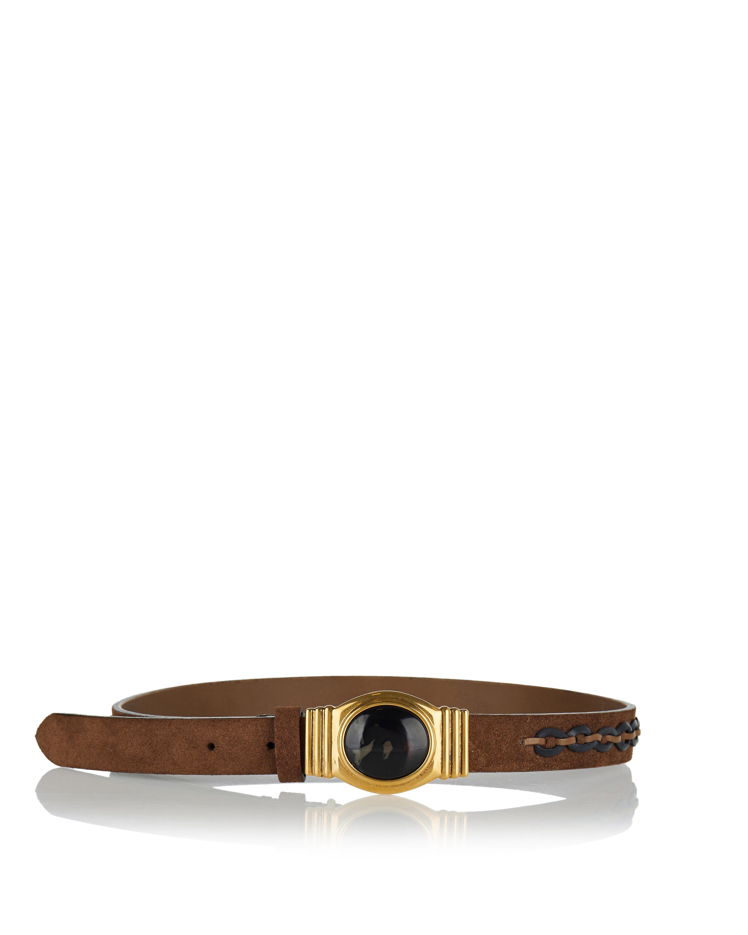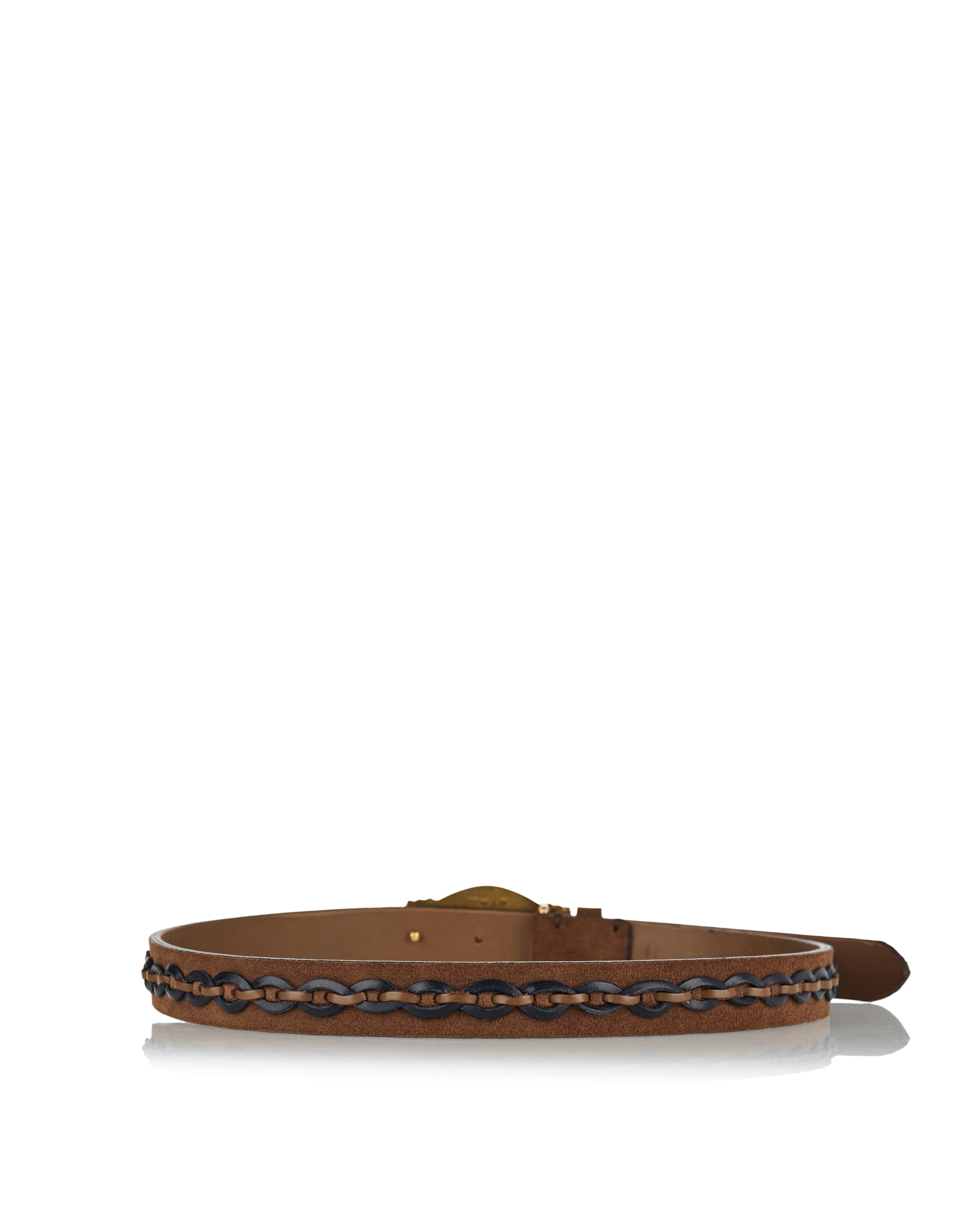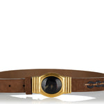 Slim leather belt detailed with refined embellishments that elevate its classic silhouette. A statement accessory designed to define the waist with subtle bohemian character.- Smooth leather