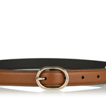 A refined, minimalist leather belt that pairs timeless elegance with subtle detail. Crafted from smooth calf leather and finished with a light gold‑toned oval buckle (with a discreet logo engraving and bamboo‑inspired belt‑loop accent), it offers a slim, 2 cm profile that flatters both waist‑ and hip‑worn styling. Perfect for polished everyday wear or refined outfits where understated luxury matters.