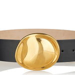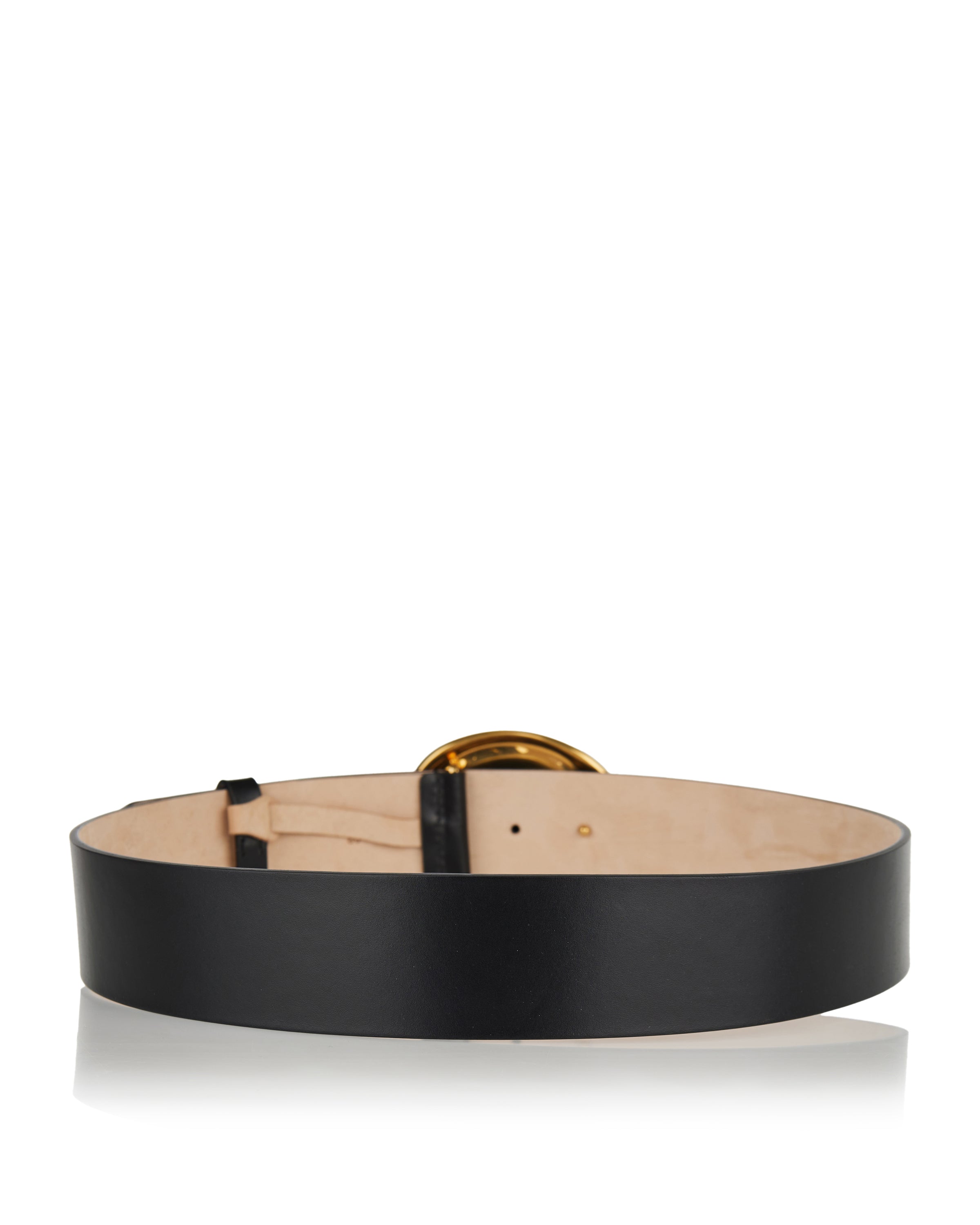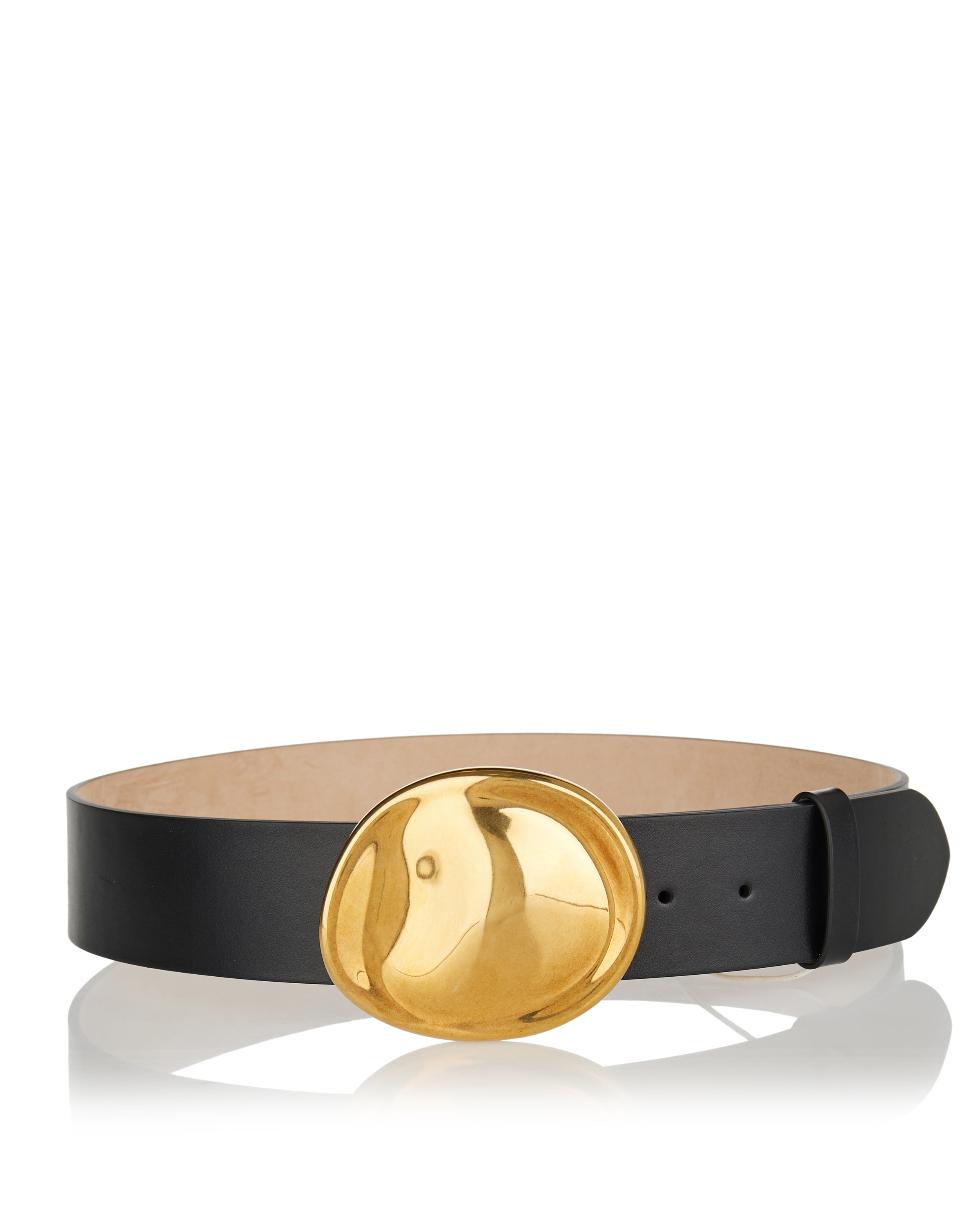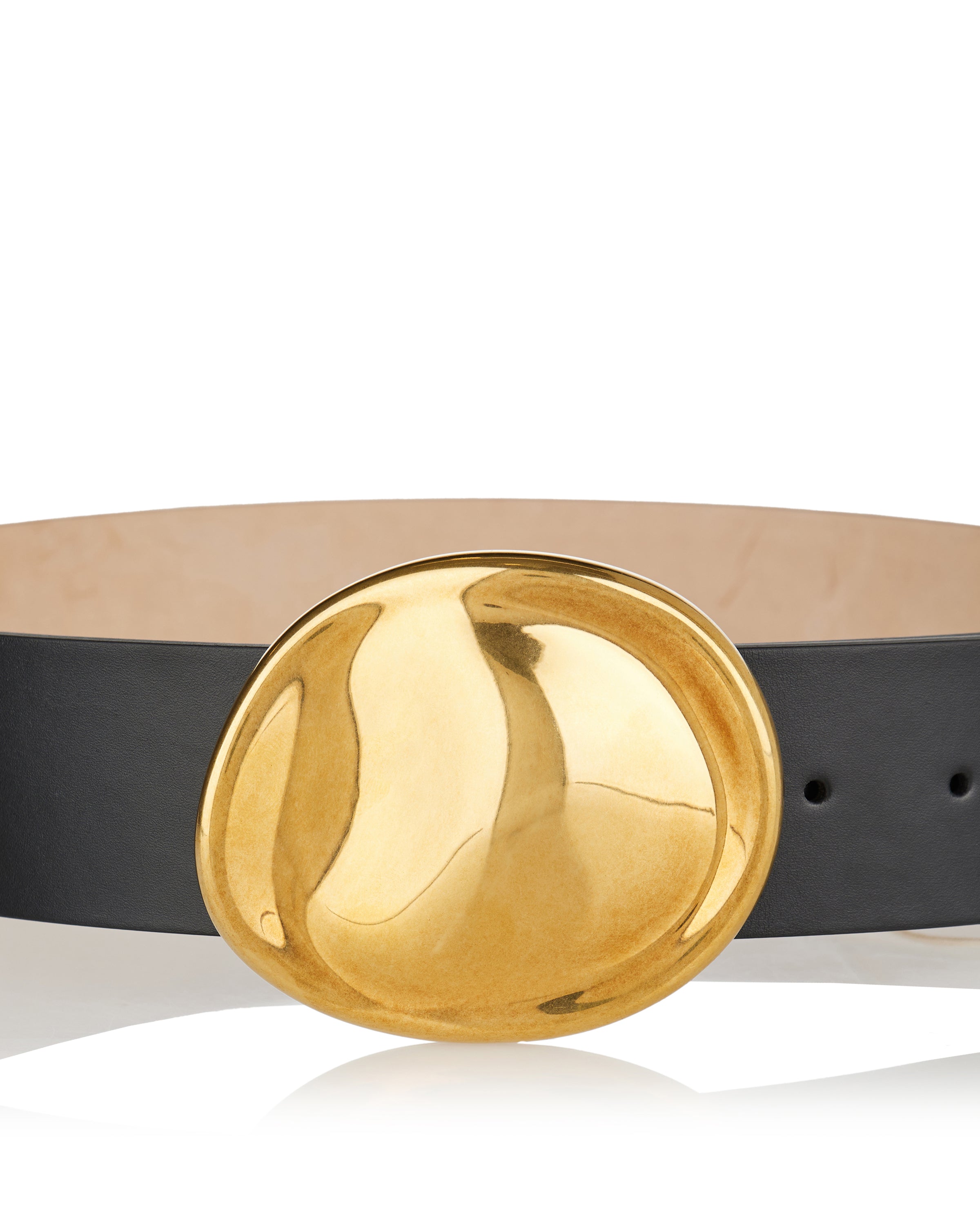 Leather belt defined by a clean silhouette and a sculptural buckle, designed to add understated structure and modern polish to everyday looks.