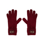Wool burgundy gloves, finished with Gucci’s signature gold-tone Horsebit detail at the cuffs. Crafted in Italy, these gloves bring refined warmth and timeless sophistication to cold-weather styling.