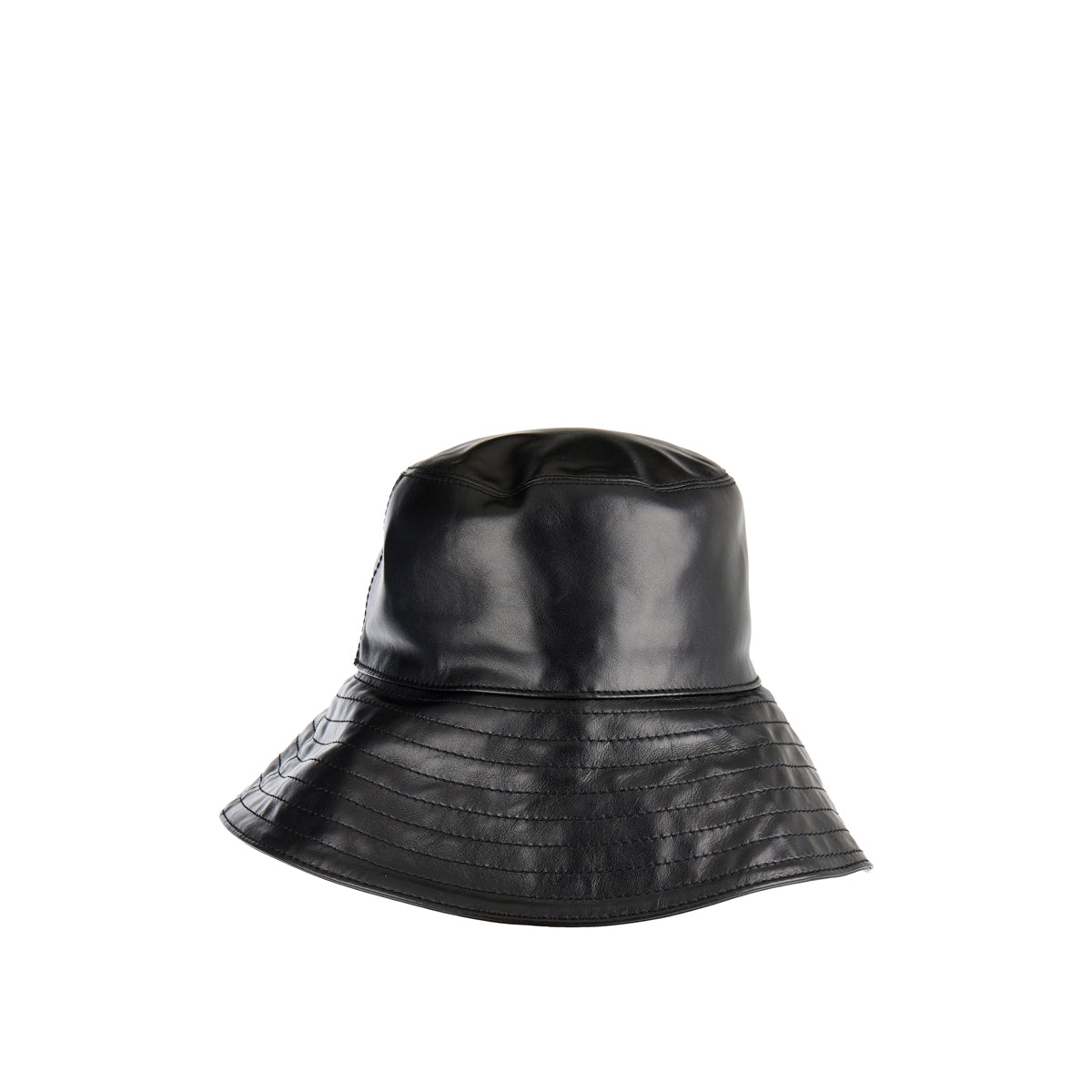 Part of the Moncler x Edward Enninful EE72 capsule, this bucket hat is crafted from supple leather in a timeless black hue. Defined by its structured shape and clean finish, it brings a refined edge to a casual silhouette, echoing the capsule’s contemporary codes.