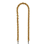 A sculptural sunglasses chain by JW Anderson, crafted from polished gold‑tone brass links with subtle weight and presence. The strap attaches with discreet silicone loops, while the final link bears a laser‑engraved JW Anderson logo. An elegant fusion of jewellery and function, ideal for elevated eyewear styling.