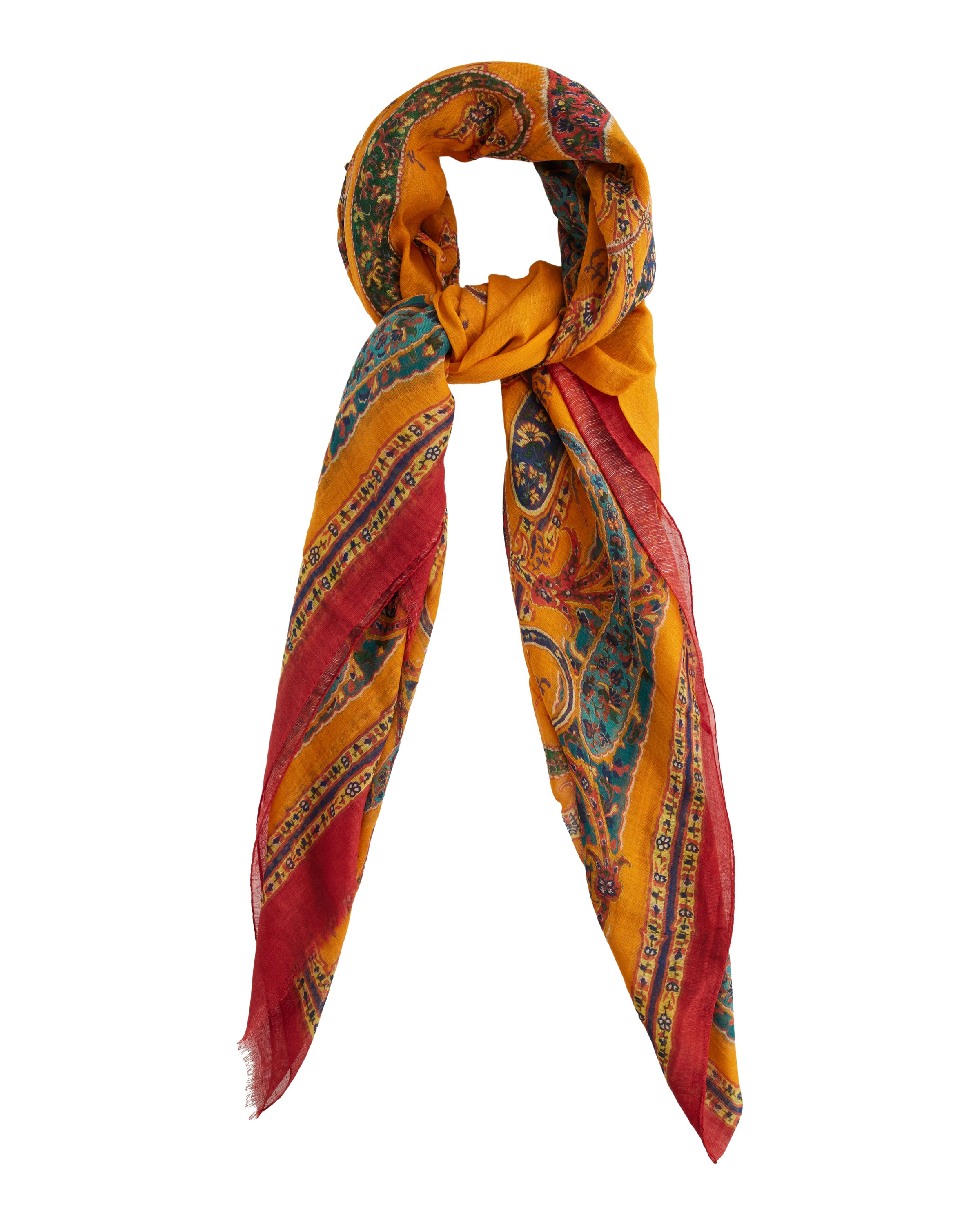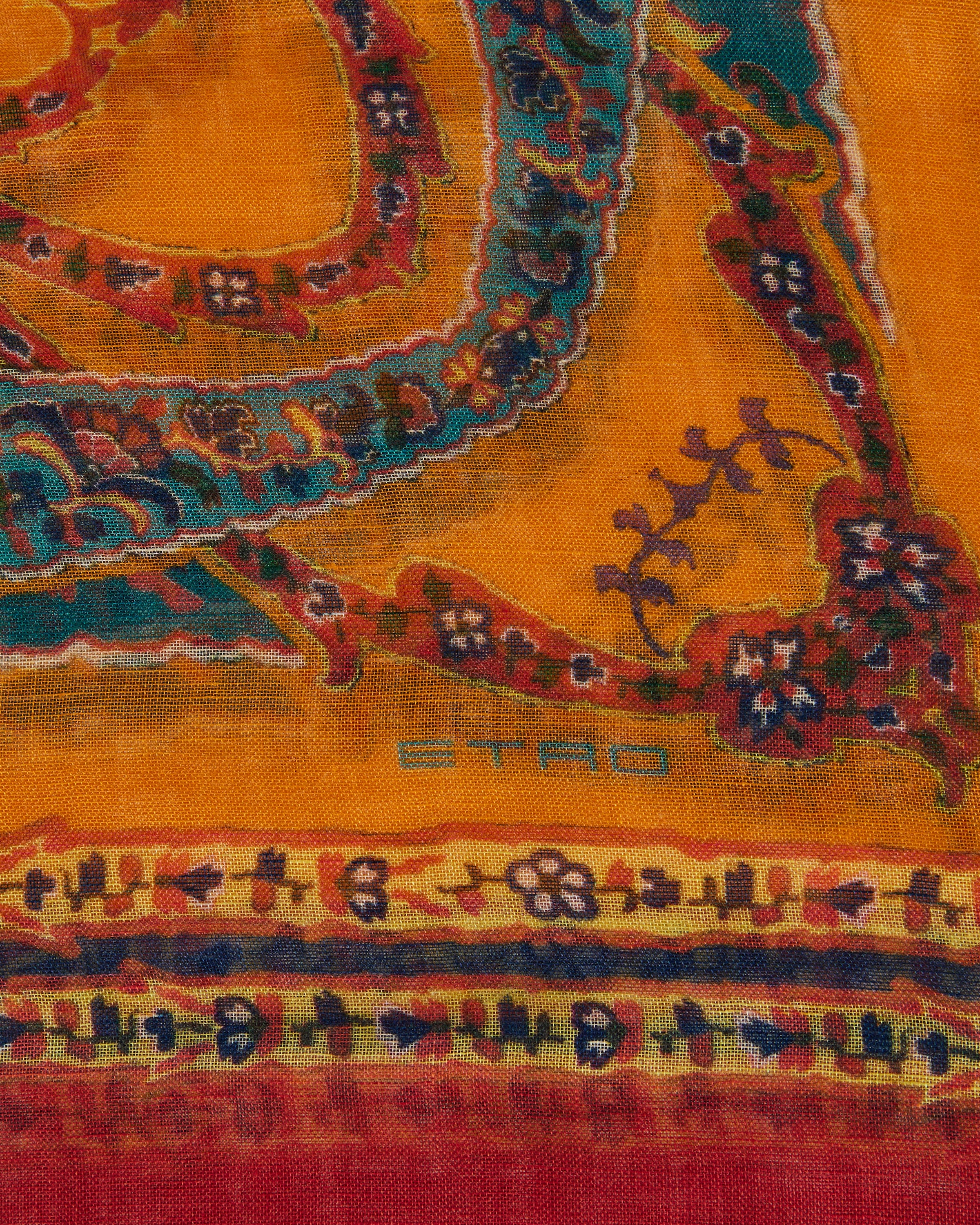 The ETRO floral paisley cashmere blend scarf showcases an intricate all‑over paisley and floral motif on a refined cashmere‑modal blend, creating a luxurious accessory that enhances both casual and formal ensembles. Finished with delicate fringed edges and the signature ETRO logo, it delivers timeless Italian elegance and versatile seasonal styling.