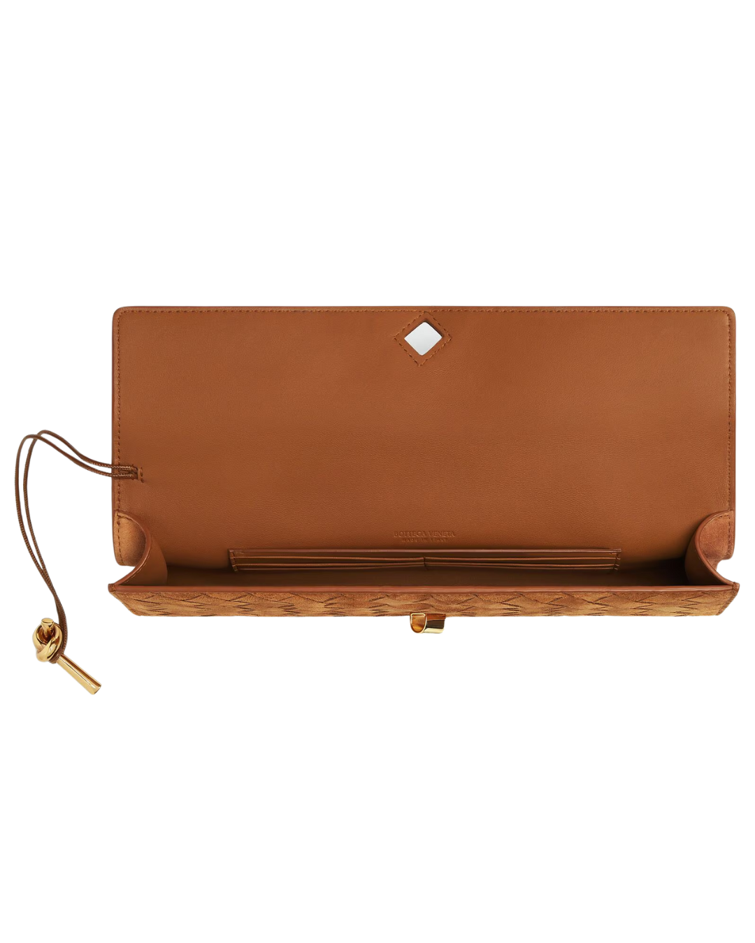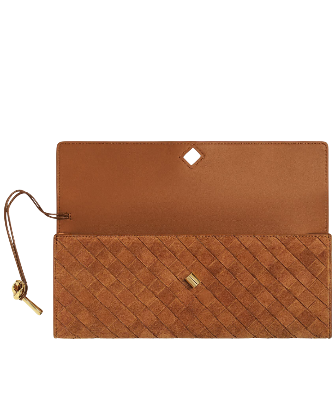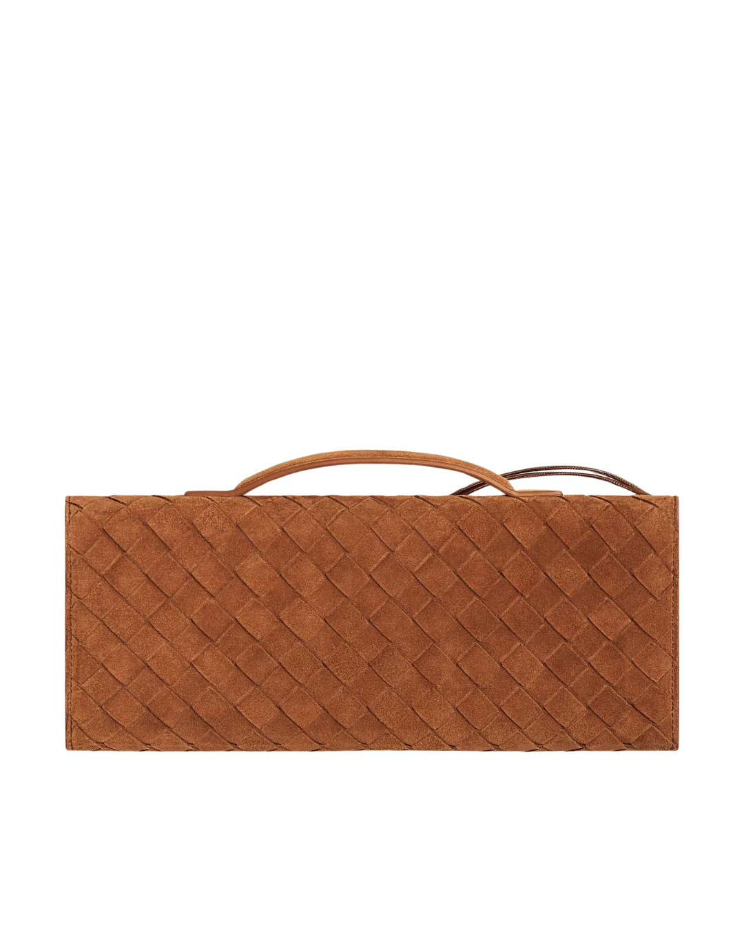 Defined by a refined, sculptural silhouette, the Andiamo clutch bag reflects a timeless approach to modern elegance. Designed with the signature Intrecciato weave, it offers a structured yet fluid form accented by a distinctive knot detail. Polished and understated, it is suitable for evening occasions, formal events, and elevated day-to-night styling, delivering quiet sophistication with artisanal depth.