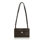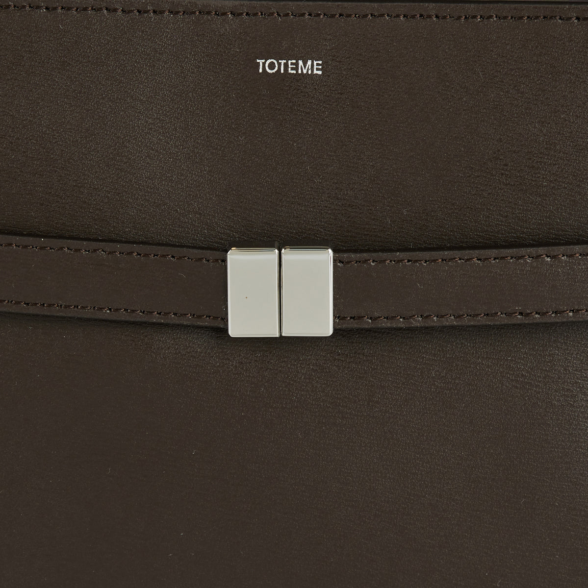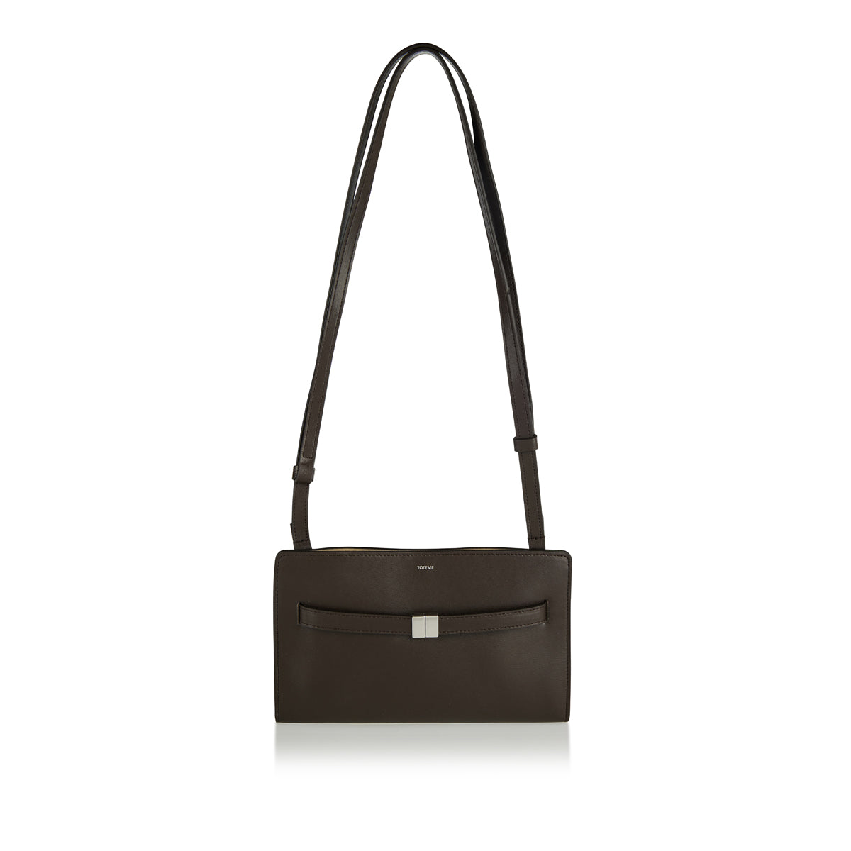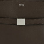 A refined shoulder bag crafted from smooth leather, embodying minimal elegance and everyday practicality. Its clean rectangular silhouette and tonal strap‑belt detail reflect Toteme’s understated aesthetic. With an adjustable strap and compact proportions, it’s ideal for citywear or elegant casual outfits, perfectly suited for carrying essentials with discreet sophistication.