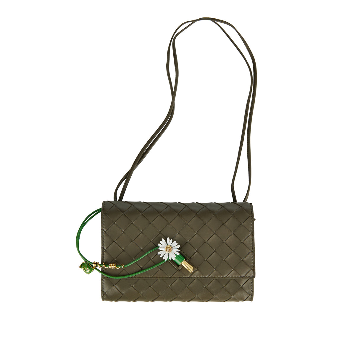 An exquisite Andiamo Daisy pouch crafted in woven leather with a daisy clasp that elevates every ensemble. Perfect for formal evenings, elegant affairs, or refined casual settings, it unites compact practicality and signature artisanal detail for a timeless, luxurious companion.