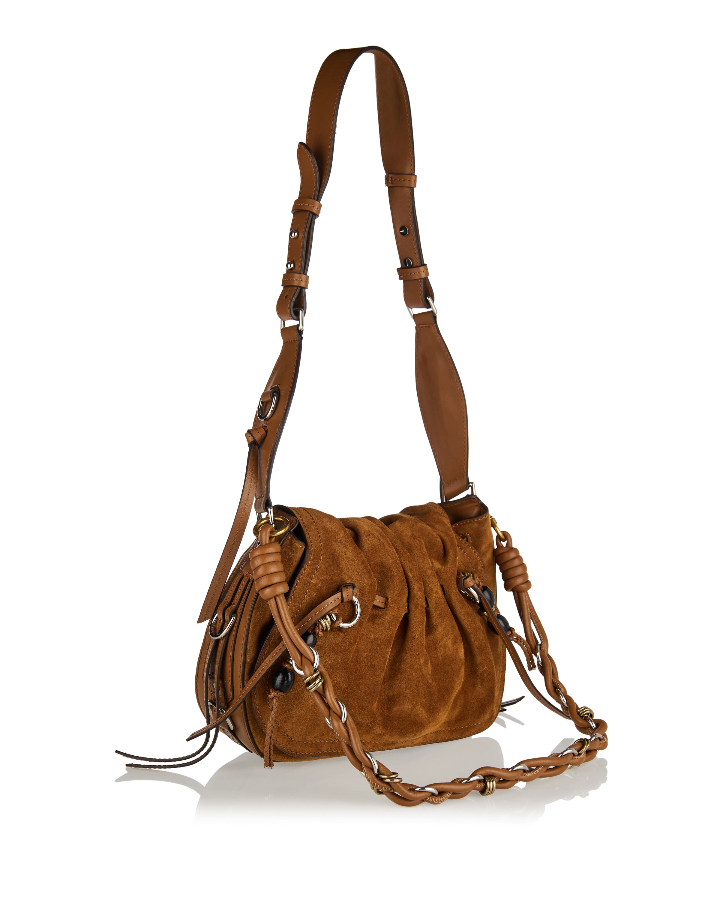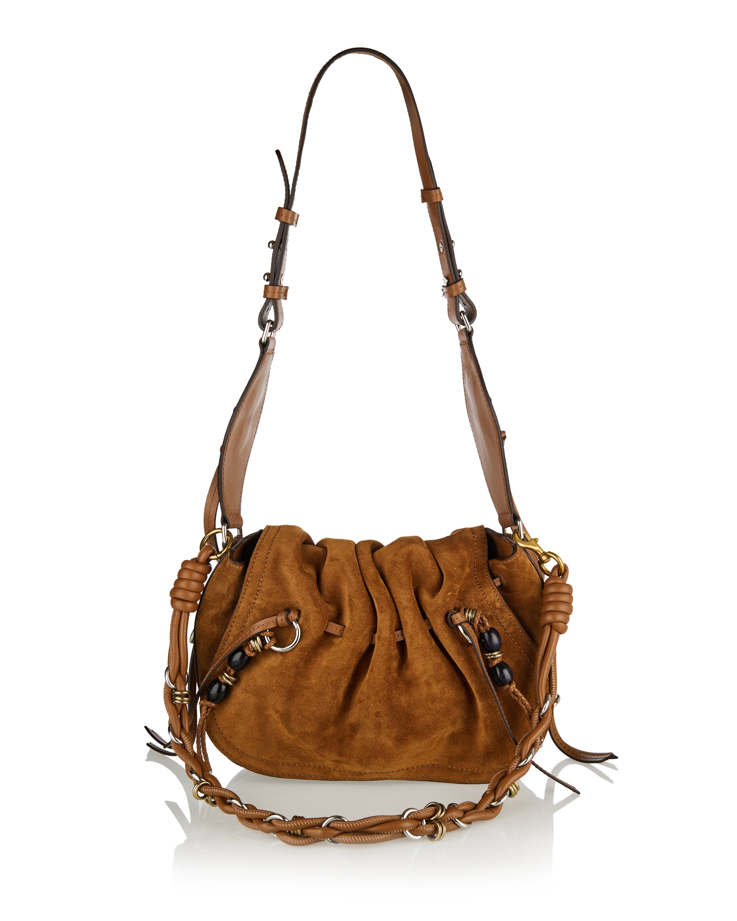 Shoulder bag crafted from suede with leather trim, defined by tassel detailing and a relaxed silhouette that brings an easy, bohemian attitude to everyday looks.