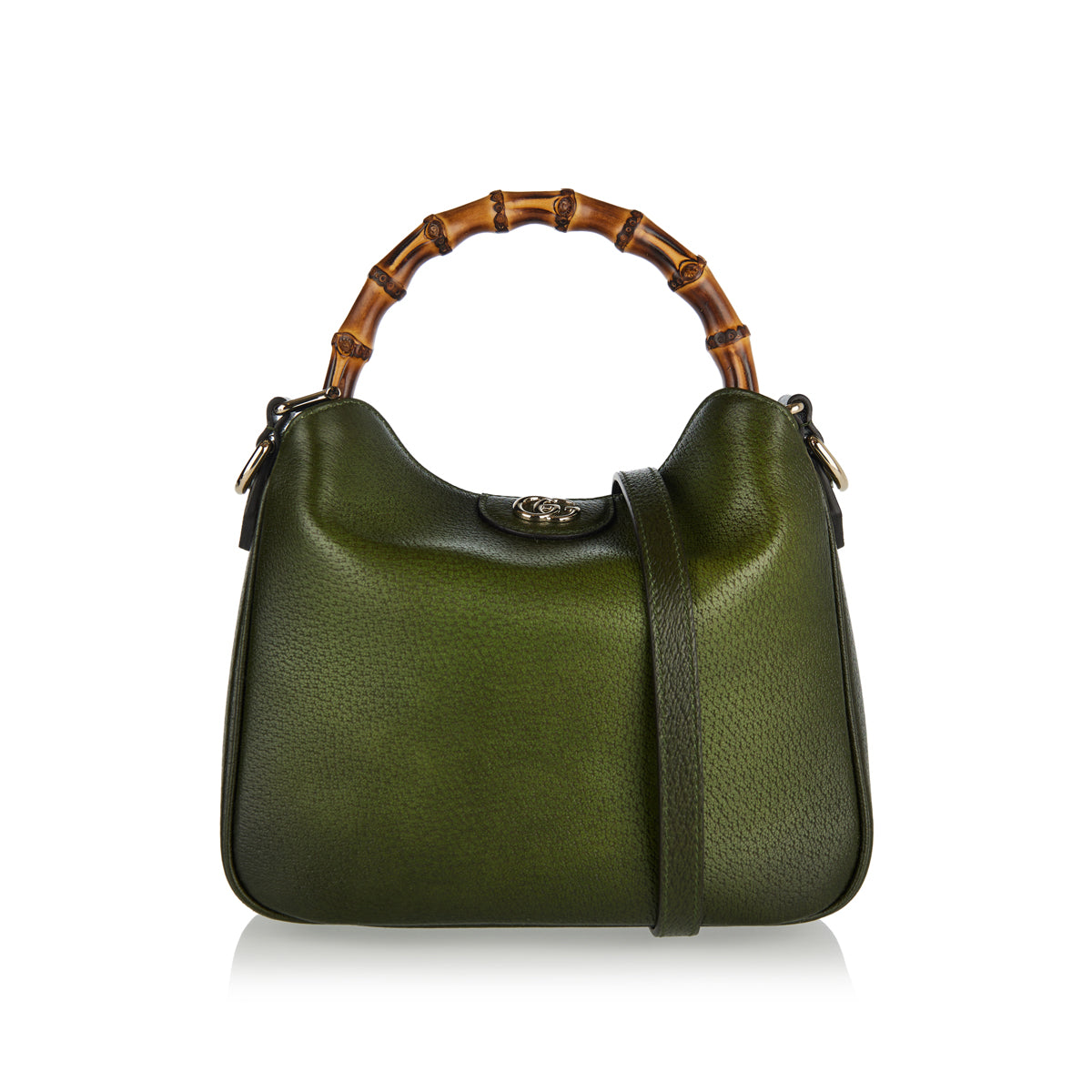 First introduced in 1991 and famously carried by Princess Diana, this small Diana bag is reimagined in premium leather, featuring signature bamboo handles, Double G hardware, and a detachable shoulder strap—crafted in Italy with timeless elegance and contemporary versatility.