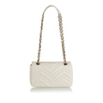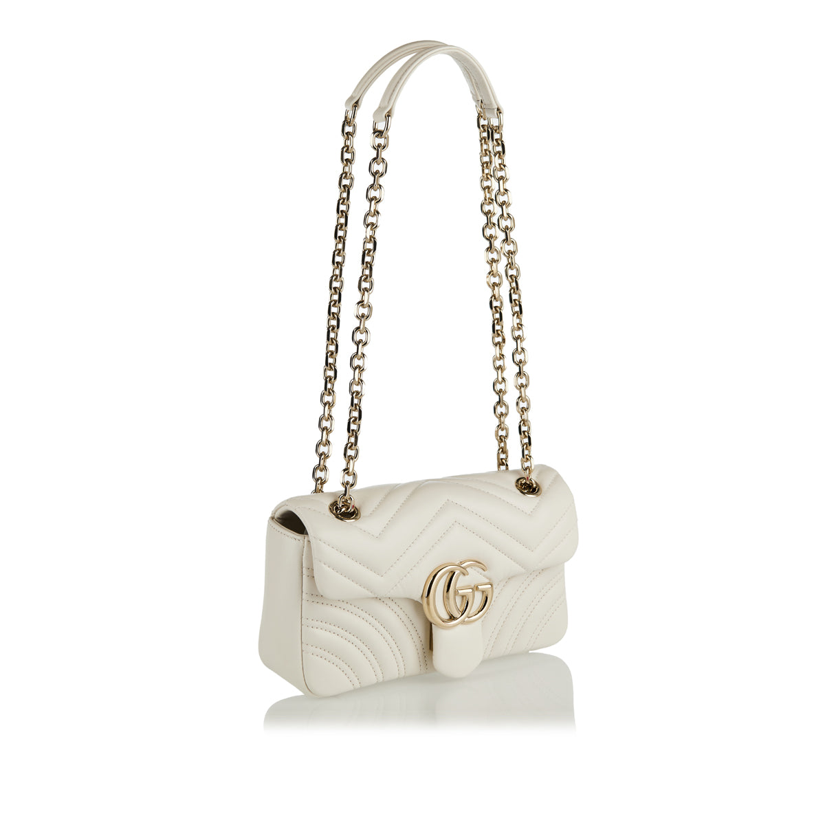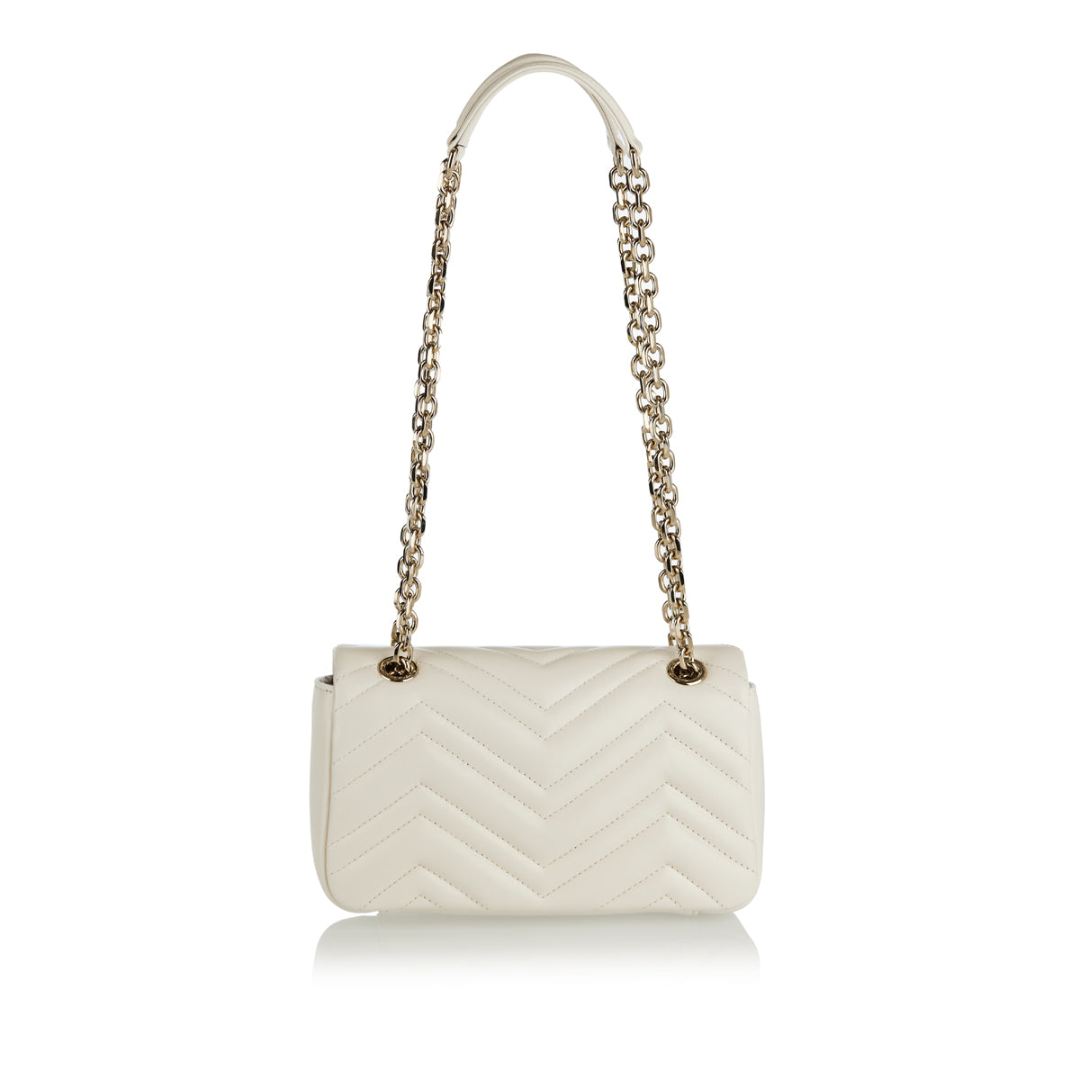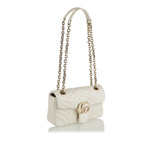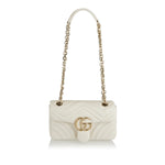 A refined small shoulder bag crafted in quilted matelassé leather with the signature chevron pattern and soft structure. Its compact, structured silhouette — complete with gold‑tone Double G hardware and a sliding chain‑link strap — makes it an elegant companion for city wear or evening outings. The discreet interior pocket and balanced proportions add practicality to its timeless luxury, perfect for polished day‑to‑night outfits.