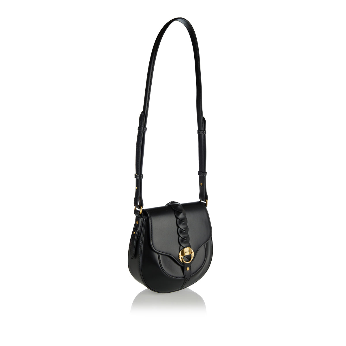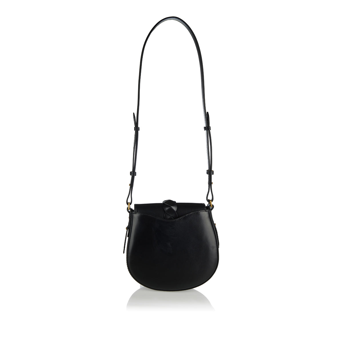 Expertly crafted in Italy from 100% calfskin leather, the Altay Small Bag features a petite saddle silhouette with an adjustable studded shoulder strap. Its refined front flap is accented by a woven leather tab, engraved metal clasp, and magnetic fastening. Practicality meets elegance with exterior patch pocket and internal embossed leather card slot.