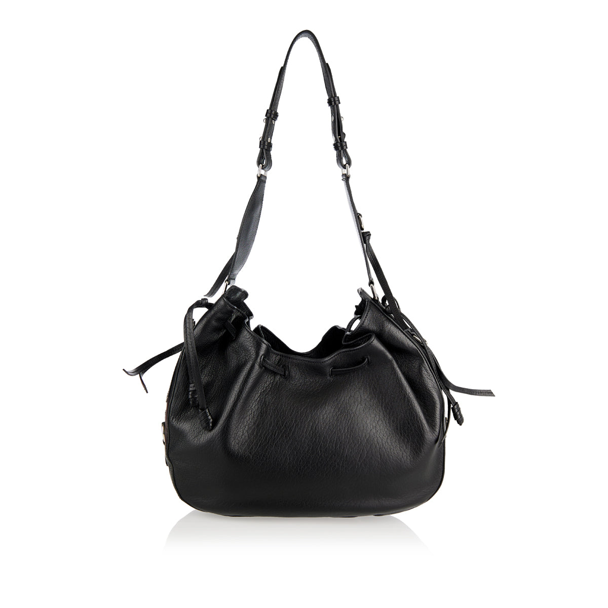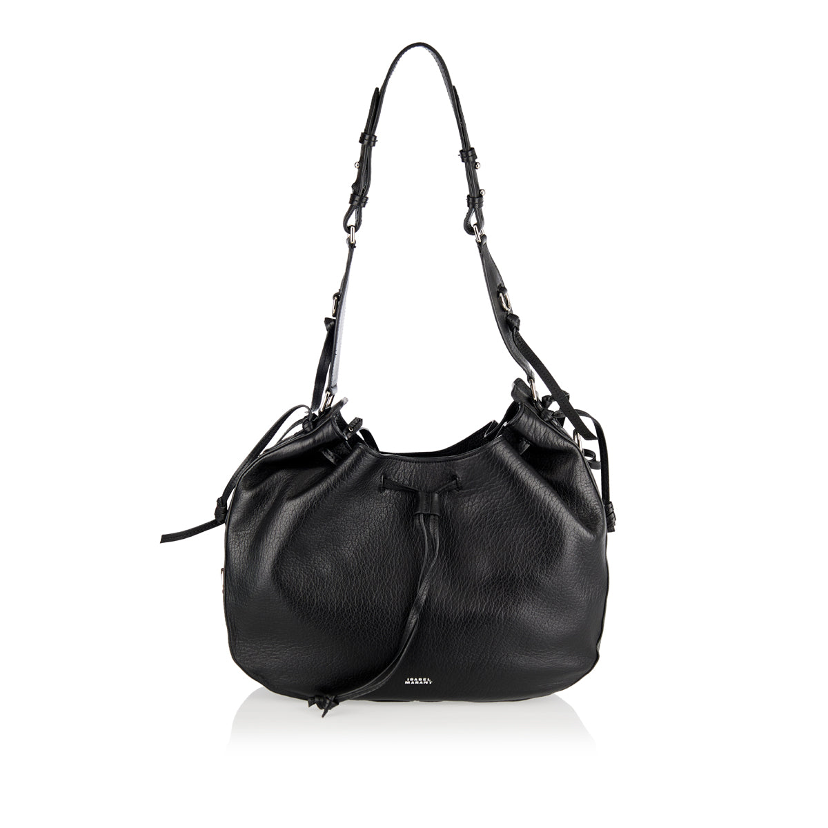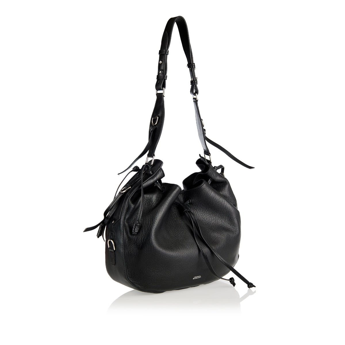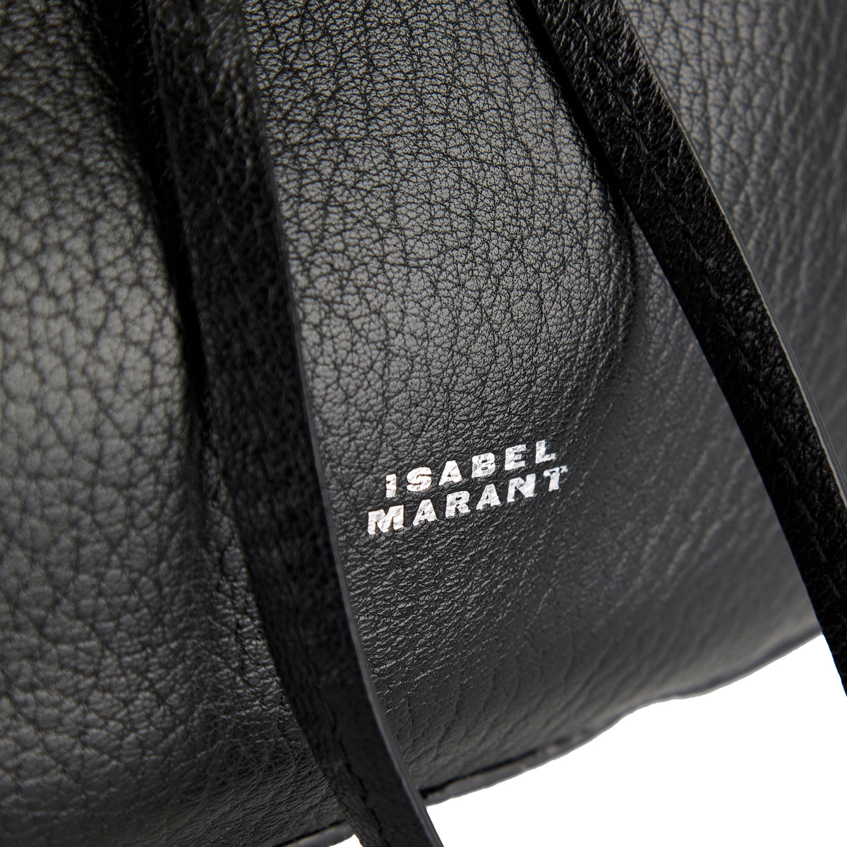 The Isabel Marant Bolton Hobo Bag is a luxurious accessory crafted from 100% lambskin leather. Featuring a tie-up style with a leather handle adorned with metal rings, it offers both elegance and functionality. Ideal for both casual and formal occasions.
