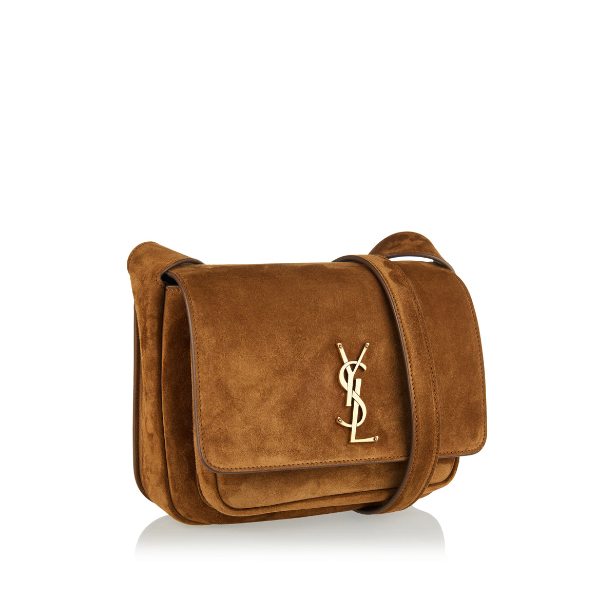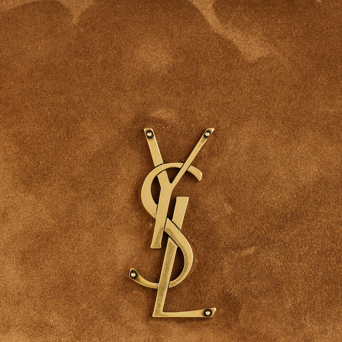 Discover the sophisticated and vintage-inspired Saint Laurent Niki Satchel. Crafted in rich brown suede, this timeless bag features two compartments and an adjustable strap for versatile wear. Finished with gold-tone hardware and the iconic Cassandre logo. Made in Italy.