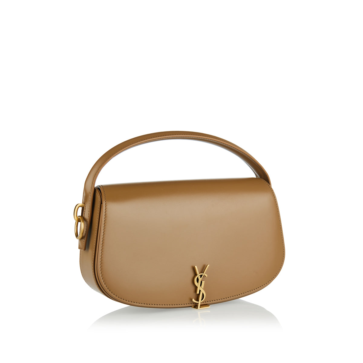 The Voltaire bag is sculpted from leather in a half-moon construction that secures with Cassandre hook closure. It has top handle, detachable strap and one compartment with a pocket.