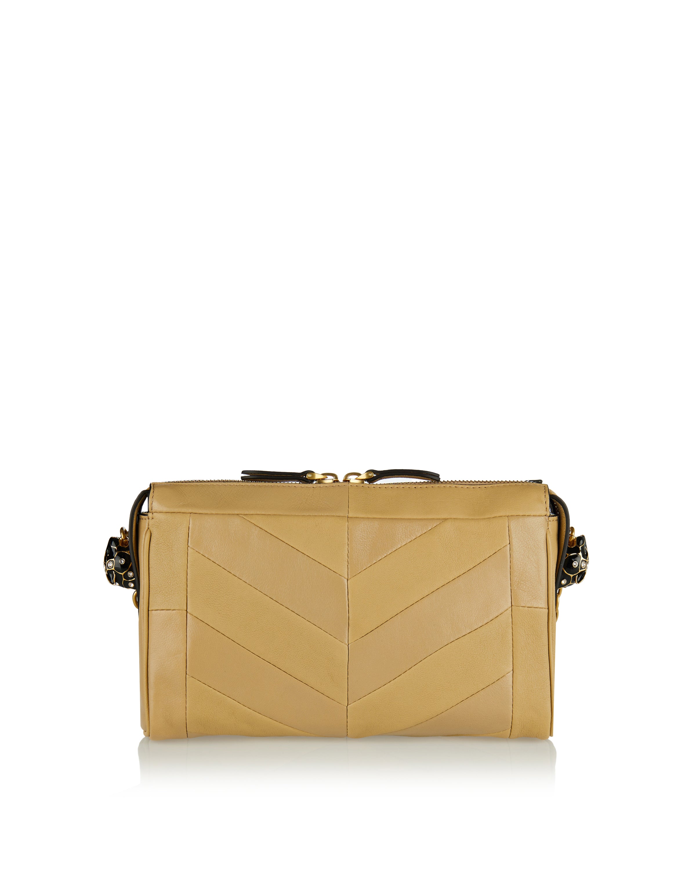 Designed with a sculptural, softly structured silhouette, this shoulder bag features paneled leather construction that creates depth and refined dimension. The balanced proportions and clean lines give it a modern yet elegant character, while the compact shape allows for effortless everyday wear. Polished and versatile, it is suitable for daily use, refined city styling, and elevated day-to-evening occasions, offering understated sophistication with a contemporary edge.