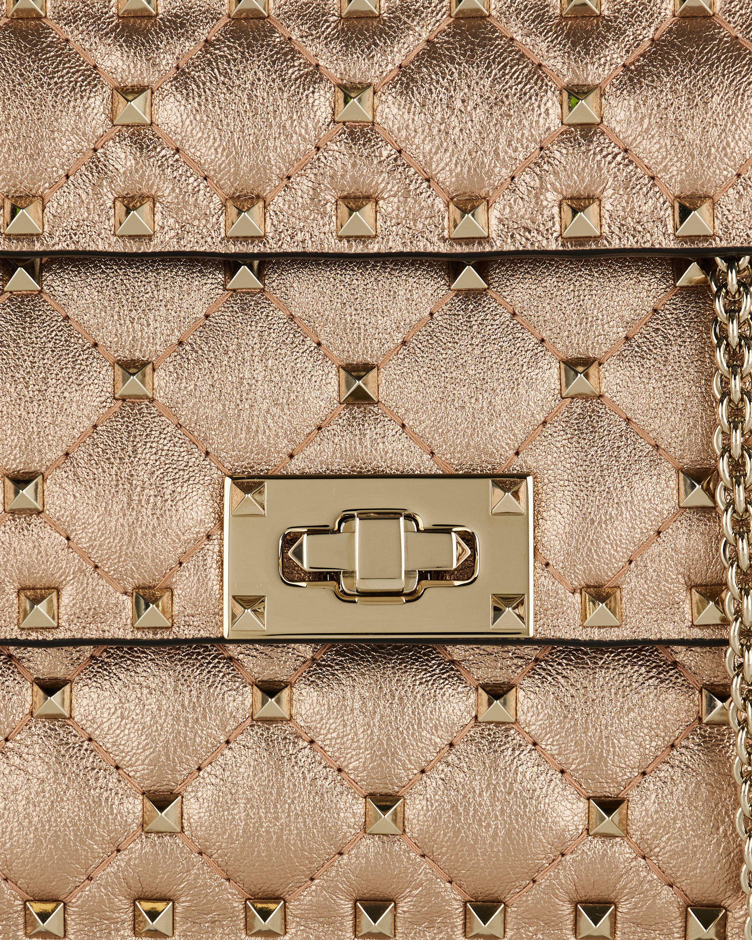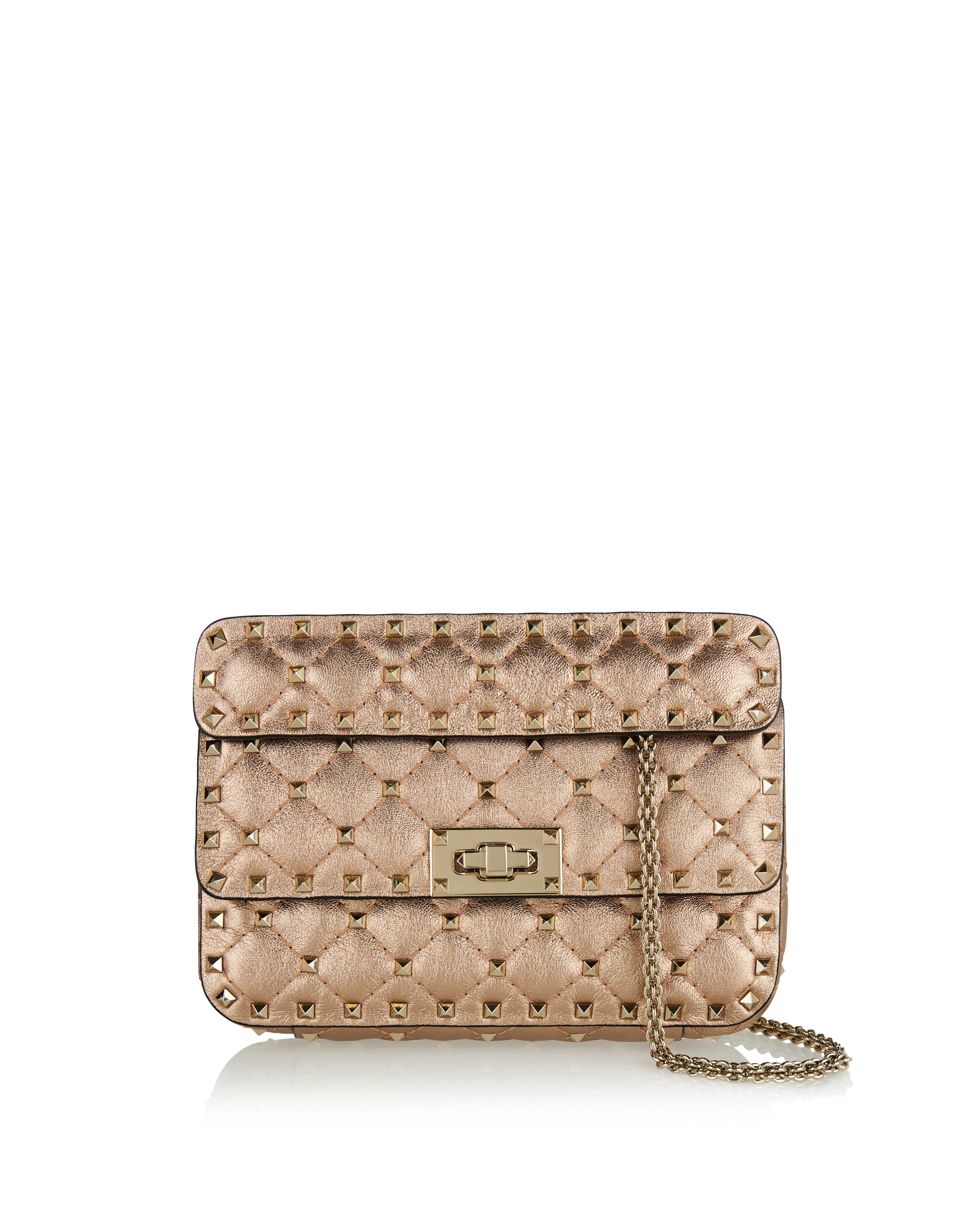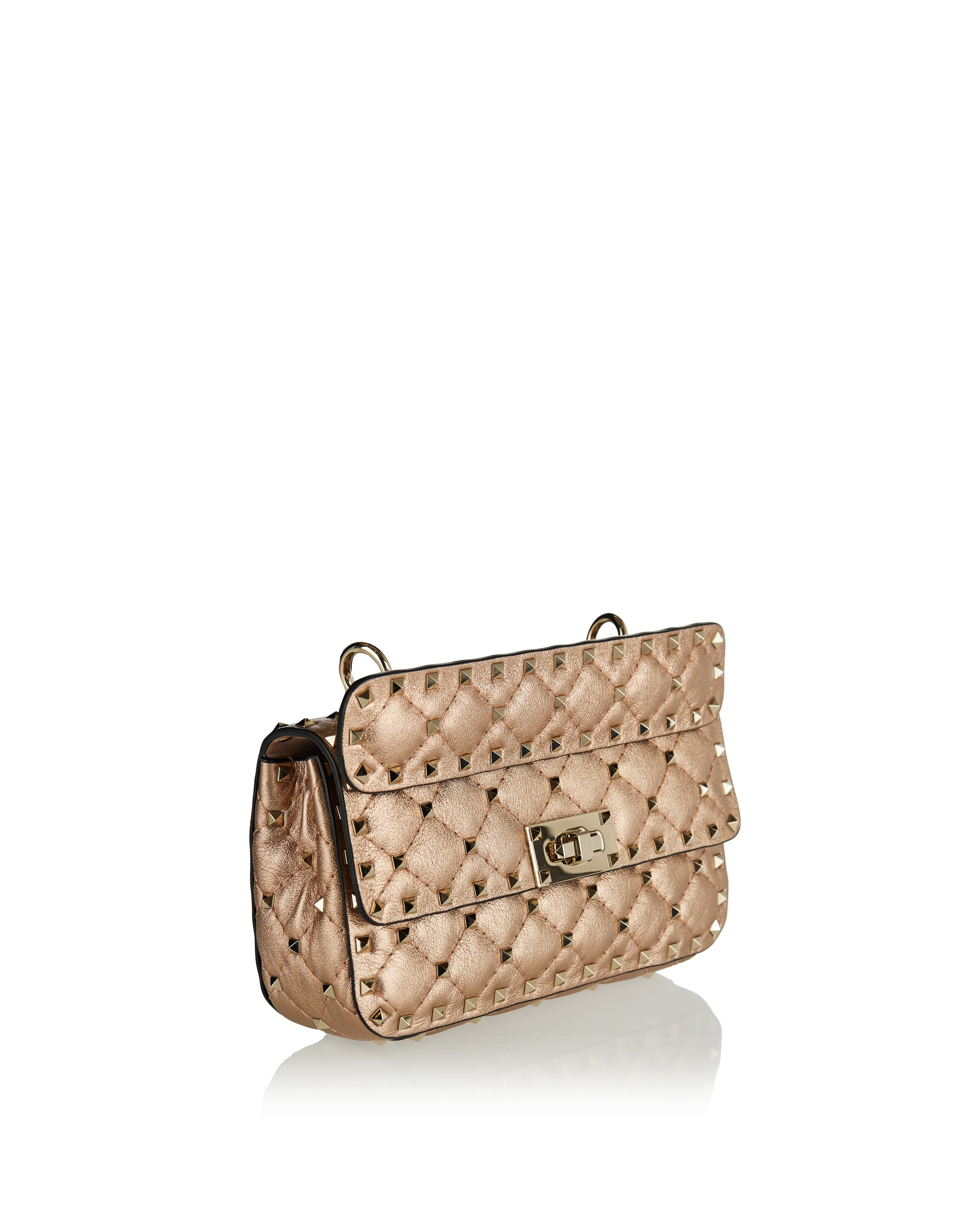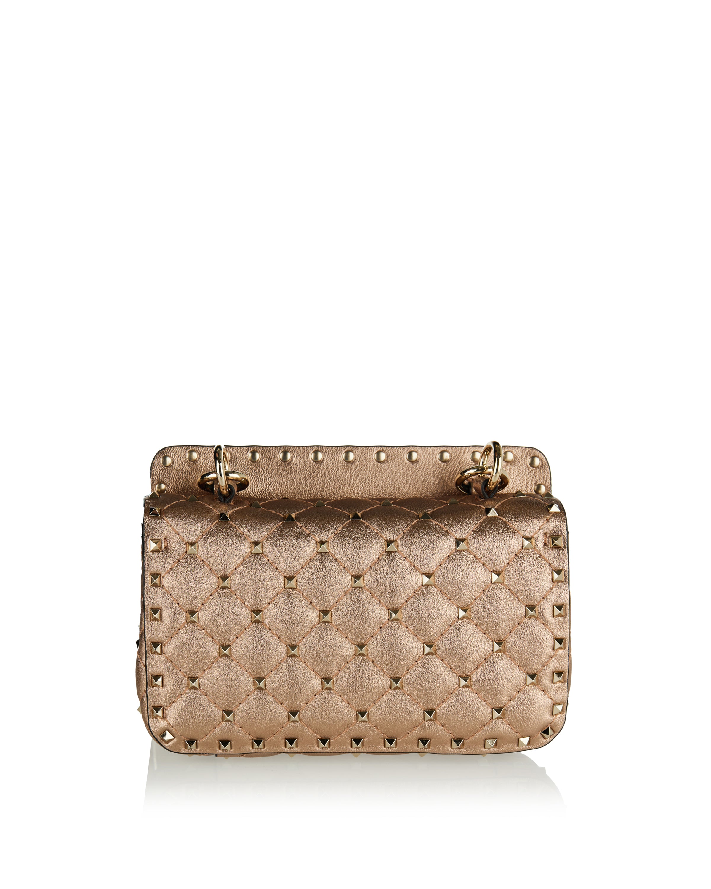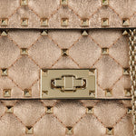 Designed with a compact, structured silhouette, this small shoulder bag features a quilted construction accented with distinctive stud detailing that adds depth and visual texture. Crafted with a refined finish, it balances elegance and attitude while maintaining a polished profile. The chain shoulder strap allows for versatile styling from day to evening. Suitable for everyday wear, refined city looks, and elevated occasions, it offers contemporary sophistication with a bold, confident character.